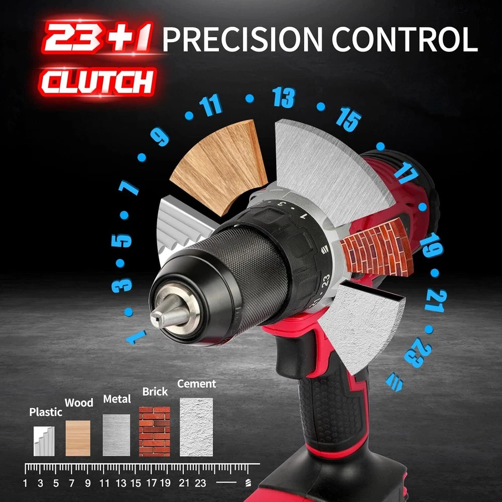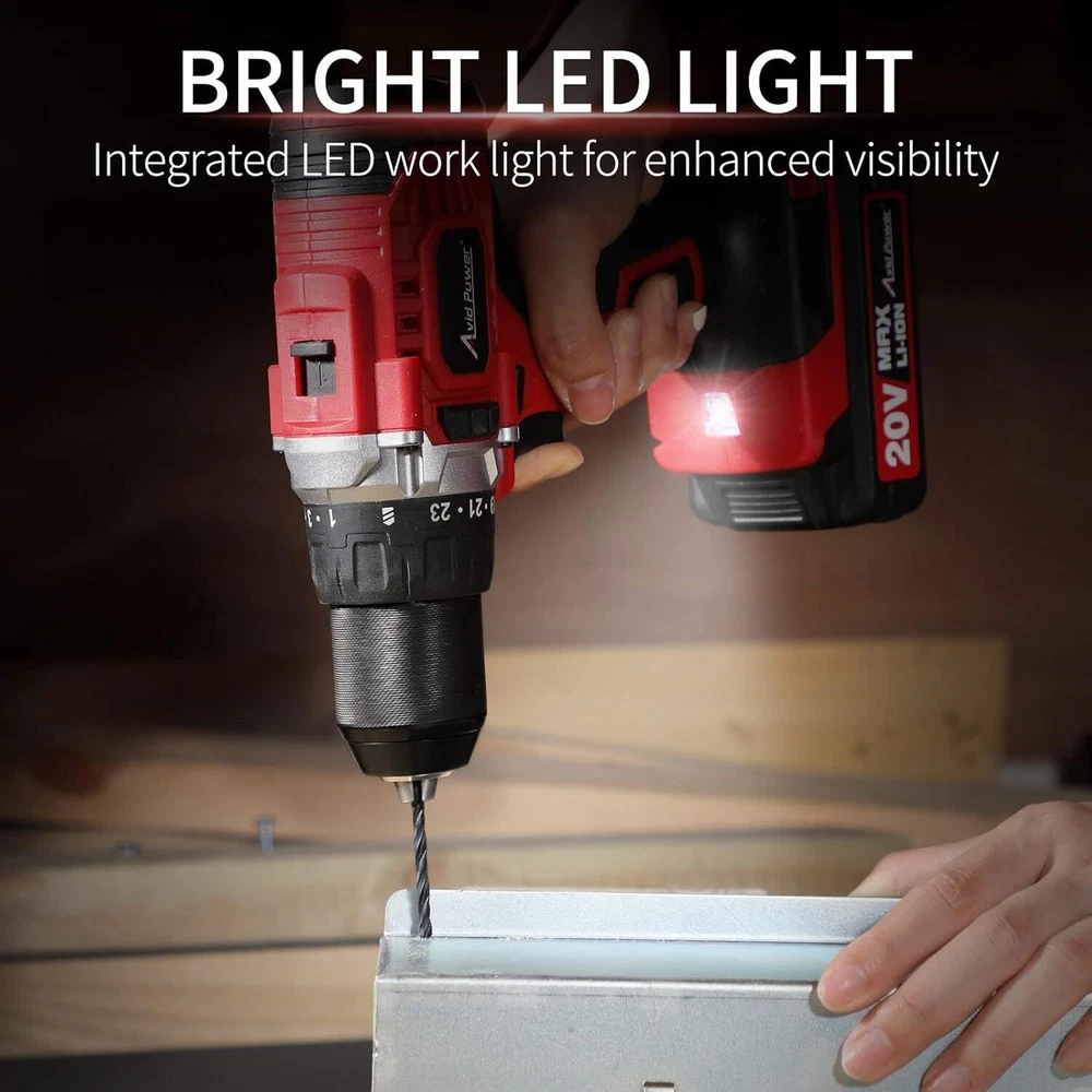 Product Description Drill Set Cordless 20V Electric Drill with Battery and Fast Charger, Variable Speed, 23+1 Torque Setting, 23pcs Accessories Drill Kit, Hand Drill with 1/2-Inch Metal Keyless Chuck IMPORTANT: If you have any problem with the drill or accessory you received, please kindly contact us and we will offer you a free replacement with expedited shipping. [20V 2.0Ah Lithium lon Battery & Fast Charger] : Avid Power Cordless Drill includes 20V 2.0Ah high capacity rechargeable lithium-ion battery and 2.0A fast charger, which can charge one battery in just 1 hour, and delivers fade-free power with no memory loss after charging. [1/2-Inch All-Metal Keyless Chuck] : Compared with 3/8" plastic chuck, 1/2” keyless metal Chuck makes this drilling machine have the greatest accessory compatibility. All-metal gearbox for high strength and maximum durability. 1/2-inch single-sleeve keyless chuck, which can be used for long-term and heavy use. For added convenience, it comes with a carrying case. [23 + 1 Clutch & 2 Variable Speed] : Powerful electric drill can provide up to 40N.m torque. The two-speed gear system with 23 + 1 position clutch can better adjust torque accuracy and provide versatility between different materials and applications. Cordless drill features a powerful motor delivering up to 30% faster drilling/screw driving, saving time per drilling application. [Ergonomic Design] : Avid Power Cordless drill adopts an ergonomically designed insulated soft handle, which can provide users with maximum comfort and reduce vibration. The cordless drill with an electronic braking system can effectively prevent efficiently from injury to the wrist due to kick back after the motor stops. Trigger-activated LED light illuminates your work area. About Us We are a reputable seller with many years of experience selling on eBay. Our goal is to provide high-quality products and excellent customer service. Shipping Items will be shipped within 1-3 business days when we received payment. (Orders are not processed on weekends & holidays) Tracking information will be sent once item is shipped. Delivery time depends on destination and other factors Item is shipped to ebay address. Leaving correct address can minimize delay. For international shipping and shipping to Guam, Hawaii and Alaska, Please contact us before placing the order. International buyers please note: Import duties, taxes and charges are not included in the item price or shipping charges. These charges are buyer’s responsibility. We will try our best to reduce the risk of the custom duties. Local pick-up is unavailable at the moment. Contact Us We reply any email messages within 1 business / working days(off-duty at weekend). If you do not get a response from us, then please check your junk or spam mailbox. Our Business hours: Mon-Fri 9:00-18:00, UTC/GMT +8 hours. Please contact us either by clicking "contact seller" in the "purchase history" section or simply click "ask a question" at the bottom of this page. If you are unsatisfied with our item or service, please contact us before leaving any feedback. We are committed to resolve all issues in a friendly and satisfactory manner.
