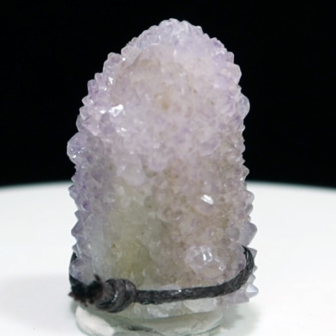 Cactus Quartz or Spirit Quartz Drilled Size Approximately 2 cm x 2.5 cm x 3.5 cm 20.6 g View My Other Items For Sale Visit My eBay Store Add me to your Favorite Sellers A cactus or spirit quartz is a quartz crystal that is encrusted by a second generation of smaller crystals grown on its prism faces. These crystals were first discovered in 1986 in the Magaliesberg Mountain Range near Pretoria, South Africa. Cactus quartz is formed by a quartz or amethyst crystal being encrusted by a second generation of smaller crystals grown on its faces. It occurs as quartz, citrine and amethyst, and comes in a wide range of colors, including purple amethyst, violet amethyst, smoky, milky clear and golden citrine. FAQ/Tips Crystals are priced by quality, color and size. Purple amethyst is more highly prized and will cost more for a smaller lesser quality crystal. Lavender is the most common color and where you will find the best quality/value for price Crystals change colors with changes in type angle and intensity of light. Color may also vary between monitors. Pictures were taken in bright light. We do our best to give you many views so you can judge the quality of the given crystals. If you have questions please ask before bidding or buying. Many of the crystals have special color properties: Many have phantoms, not just the ones we?ve indicated. Some have ?floating? purple tips. The placement of darker purple against purple or white crystals appears to change as the crystal is turned. Many are a mixture of citrine and amethyst. The ones called ?Golden Healers? or ?Sunshine? have a rainbow effect on crystal faces. To get combined shipping please use the shopping cart and click on request invoice. Wait until you get one from us to pay. Thank you for looking. Please check out our other items. Track Page Views With Auctiva's FREE Counter