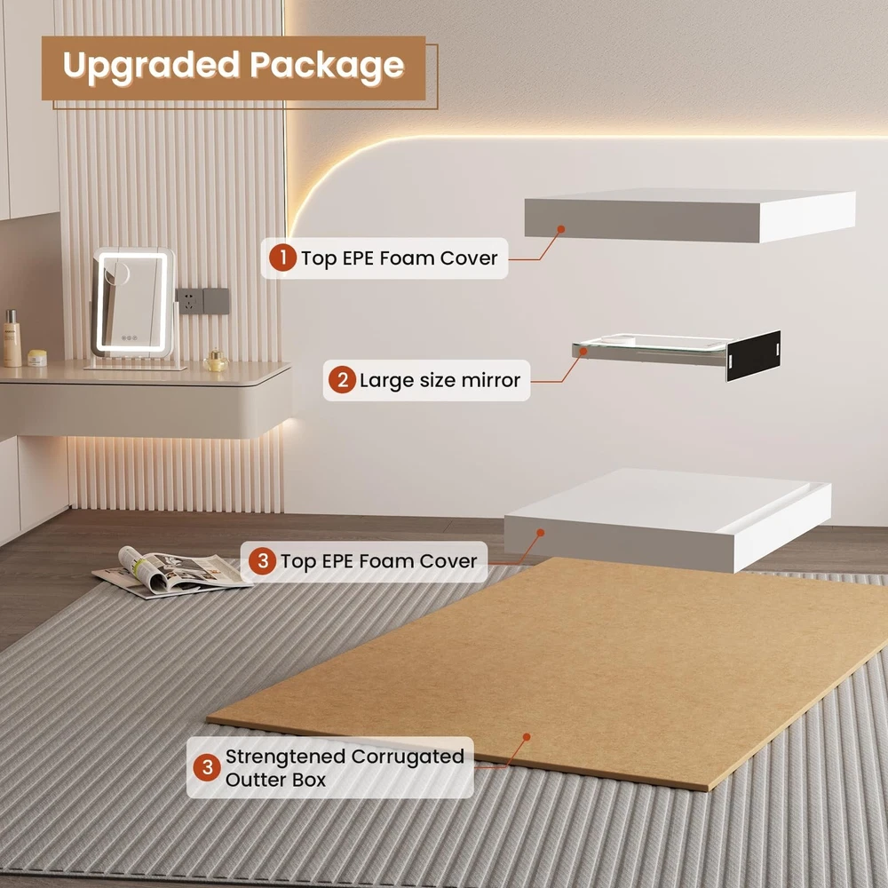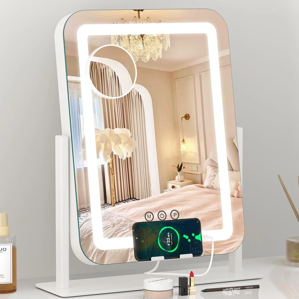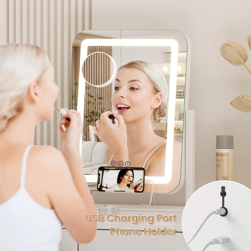 Dripex LED Lighted Makeup Mirror with USB Charging Port 3 Colors Dimmable 15"x12" Vanity Mirror with Lights Smart Touch Phone Holder 10X Magnification for Vanity Desk Product Details Color: White-usb Charging Size: 15"L x 12"W Brand: Dripex MPN: DV UPC: Does not apply EAN: Does not apply Brand: Dripex Room Type: dressroom Shape: Rectangular Product Dimensions: 15"L x 12"W Frame Material: Metal Brand: Dripex Room Type: dressroom Shape: Rectangular Product Dimensions: 15"L x 12"W Frame Material: Metal Style: Modern Mounting Type: Dresser Mount Finish Type: Polished Surface Recommendation: Glass Special Feature: Corded Color: White-usb Charging Number of Items: 1 Material: Metal Frame Type: Framed Assembly Required: Yes Frame Color: white Manufacturer: OunuoDirect Size: 15"L x 12"W Item Weight: 5.52 pounds Item model number: DV Date First Available: September 30, 2024 Mobile Phone Charging is ConvenientThe USB charging and phone holder of the LED lighted makeup mirror will provide great assistance when we watch tutorial videos for a long time to learn makeup. They can keep the phone fully charged and free your hands Perfect Makeup Angle360rotating large vanity mirror with lights can help us find the most perfect visual angle to enjoy the makeup process, the detachable 10x magnifying round mirror allows us to easily adjust eyeliner, eyebrows, lipstick; Bedroom dressing room dorm room essentials for girls Comfortable and Safe Lighting EffectsWe can adjust the light up mirror brightness from 10% to 100% by long pressing the P button, and select 6000k cold, 4000k natural or 3000k warm by short pressing the M button; CRI>90 eye protection LED light strip with 120 lamp beads, service life of 50,000 hours, We can experience the most realistic makeup We Can Trust The Dripex Vanity Mirrors MaterialDripex HD makeup mirror uses aluminum alloy frame and base, explosion-proof tempered glass, and eye-protection LED light strip. The base with non-slip rubber makes the mirror stable. Excellent material, solid structure, safe and beautiful We Can Trust Dripexs Services After SalesDripex lighted cosmetic tabletop mirror is not only a mirror, but also your beautiful decoration of the dressing room and the bedroom. If you received a defective product, please do not hesitate to contact us to solve the issue for you.