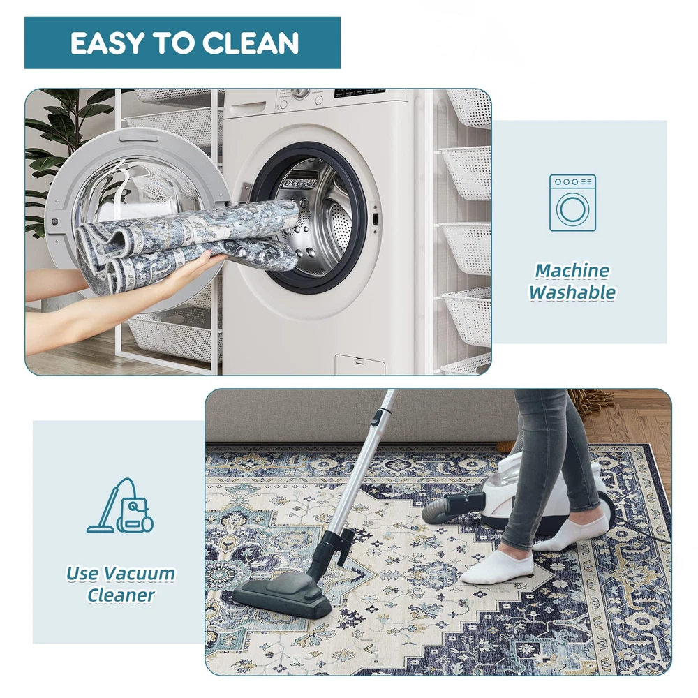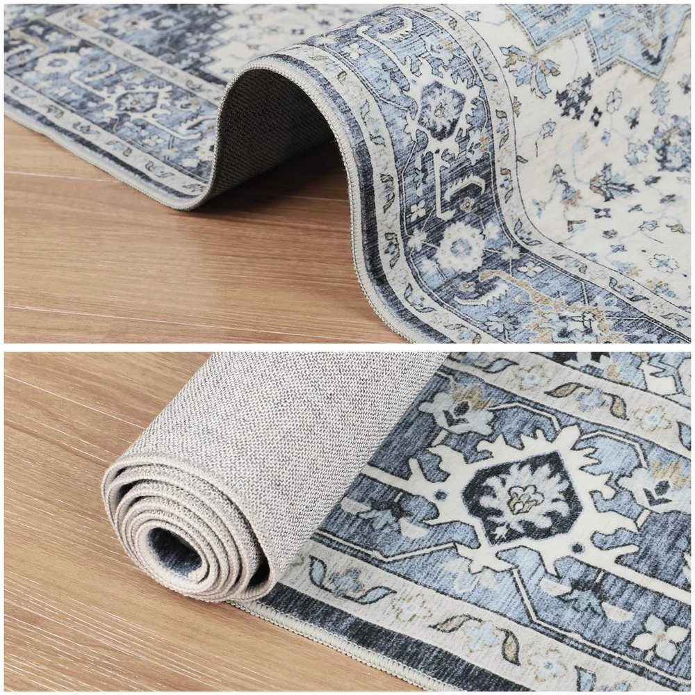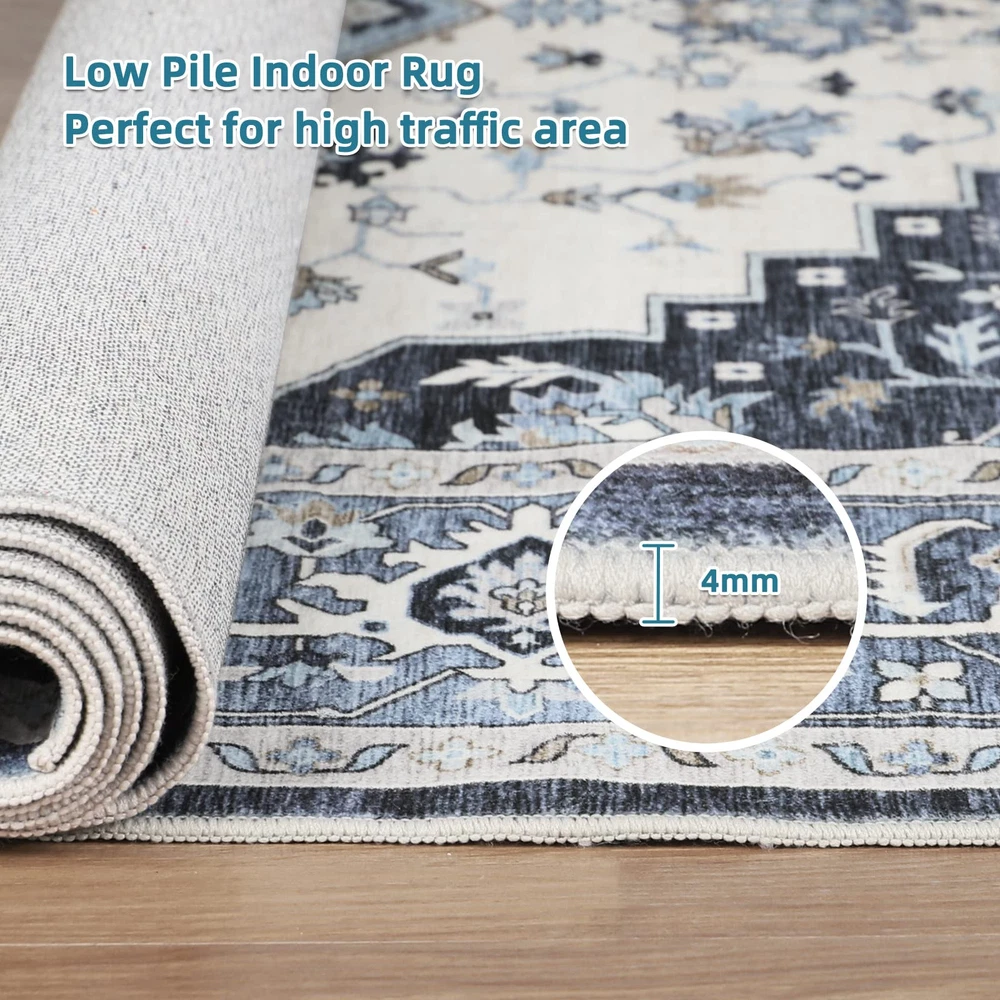[Exclusive Design Vintage Rug] Dripex Vintage Collection area rug features classic and chic floral medallion patterns and distressed print style, leaving you a beautiful and stunning visual experience. This 6'x6' round rug with beautiful colors and unique design works well with most interior style, adding elegant style to any room in your home. [Soft Low-Pile Accent Rug] Our throw accent rugs are made of durable synthetic fiber polyester, not only ultra-soft but also stain resistant. 0.2-inch piles allows for convenient placement in entryways, underneath furniture, perfect for heavy traffic area in your home. [Non-slip&Non-shedding Rug] Designed with skid resistant TPR backing, the carpet will grip firmly to the floor without the need for additional rug pads,reducing the risk of tripping. Expertly machine woven and reinforced overlock edges ensure virtually non-shedding. Strong and durable for kids to play on it and no need to worry about pet paw scratches. [Easy to Care Washable Rug] Dripex floor mats can be easily cleaned with a vacuum cleaner or washable machine. Please remember that machine wash in cold water(not to add bleach) and air dry without heat. Use vacuum without beater bar. Also for daily cleaning with broom or wipe to prevent dust and crumbs. [Widely Used Area Rugs] Dripex Vintage Rugs offers a variety of designs and sizes to match your living space perfectly. Medallion, Traditional, Vintage, Faded, Tribal, Modern, Antiqued, Classic, Shabby Chic and more. Widely used in living room, bedroom, kitchen, dining room, bathroom, entryway, hallway.