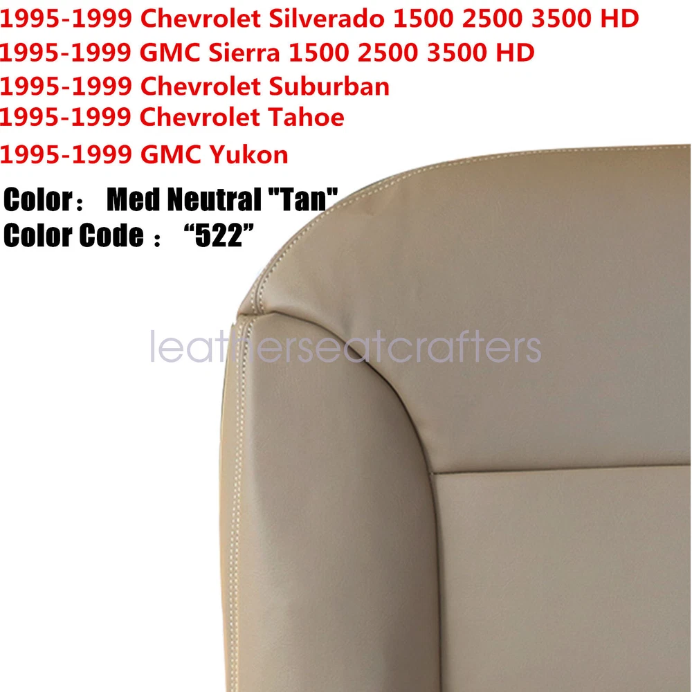 Driver Bottom Seat Cover Tan + Foam Cushion For 1995 1996 Chevy C1500 Suburban Details For 1995-1999 Chevrolet/GMC Tahoe, Suburban, Silverado & Sierra, Yukon Driver Side Bottom Replacement Microfiber Leather Seat Cover Tan Color Code 522 & Foam Cushion Product Compatible: Make: Chevy/GMC Model: Tahoe, Suburban, Silverado & Sierra, Yukon Years: 1995 1996 1997 1998 1999 Fit For: 1995 1996 1997 1998 1999 Chevy/GMC Tahoe, Suburban, Silverado & Sierra, Yukon 1995 - 1999 Chevrolet Suburban 1500 2500 LT LS 1995 - 1999 Chevrolet Tahoe 4-Door LT LS 1995 - 1999 Chevrolet Tahoe 2-Door LS LT Sport 1995 - 1999 Chevrolet Silverado 1500 2500 3500 C/K Z71 LS LT 1995 - 1999 GMC Sierra1500 2500 3500 1995 - 1999 GMC Yukon1500 2500 3500 Features: Type: Driver Bottom Replacement Microfiber Leather Seat Cover & Foam Cushion Side : Left, Front Color: Med Neutral "Tan"- Factory Color Color Code: "522" Located in your Glove Box Sticker Material: Microfiber Leather & Foam Heated Seats: Fits Heated Seats and Non Heated Seats Power Seats: Fits Power Seats and Non Power Seats Vehicles Seat Cover's Attached Padding: ½ Inch attached foam padding Package Included: 1x Driver Bottom Replacement Microfiber Leather Seat Cover 1x Driver Bottom Replacement Foam Cushion About This Item: Warranty: 5 Year Fast & Free Shipping From KY or CA If you do not know how to install, please contact us,We can provide video installation instructions Tips: This Driver Replacement Bottom seat cover, built to factory specs with Quality Microfiber Leather to match the Interior of your vehicle! Our product is exactly the same as your existing cover and guaranteed to fit perfectly on your seat foam Pad. Any wrinkles seen in the pictures is from being in a box and guaranteed to disappear once installed Correctly. Please note this item is a replacement, not a slip on or pull over. The boxing/skirting is Microfiber Leather sewn onto foam like . Please Note: Our Leather seat cover matches with your cover. Actual Replacement Cover. NOT A SLIP ON or PULLOVER. Communication is the best way to solve the problem. If you have any problems after purchasing, please contact us in time, before opening return or case. Shipping policy: Payment: Returns: About us: Shipping policy: 1.Orders are usually shipped within 24 hours after your payment(except weekends & official holidays). You can log on to eBay to check your logistics tracking number. 2.Please make sure to provide us with correct,precise and detailed shipping address before purchase, and cannot change it once purchased. Payment: PayPal payment accepted only.Please purchase and pay for the item through the eBay. Returns: 1.If any item is defective upon receipt or do not work, please contact us for the condition,we will provide a solution for such cases. 2.Return is accepted within 30 days after the buyer receiving the item. About us: 1.Thanks for purchasing in our store,if you have any questions, please contact us immediately. We will provide you with the high quality service. 2.If you are satisfied with our products, please give us a positive feedback. On Oct 19, 2024 at 00:42:23 PDT, seller added the following information: