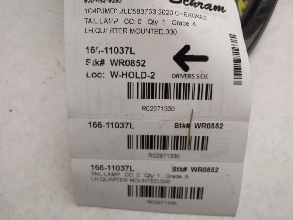 Store Home About Us Customer Resources Feedback Contact Us Driver Left Tail Light Quarter Panel Mounted Fits 19-23 CHEROKEE 2971330 Free Shipping - 90 Day Warranty - Est. 1923 Description Enhance Your Vehicle's Rear Visibility with a Quality Taillight Schram Auto and Truck Parts - Taillight Illuminate the road behind you and enhance your vehicle's rear visibility with a reliable Taillight from Schram Auto and Truck Parts, Inc. Our selection of taillights ensures that you can drive with confidence, knowing that your vehicle is visible to other drivers. Every taillight may have light scratching from normal use, but we're here to provide detailed part information in our conditions and options section, helping you make an informed decision before purchasing. Clarity Matters Driving with a functional taillight is crucial for your safety and the safety of others on the road. Ensure you're getting the right fit by checking the 'interchange' portion of this listing, and feel free to contact us with any questions you may have. Your Questions Are Valued Our commitment to your satisfaction means that Chad, our knowledgeable specialist, is ready to address any inquiries you might have. Don't hesitate to reach out for the information you need to make a confident choice. Upgrade your vehicle's safety and ensure you're visible to others on the road with a quality Taillight from Schram Auto and Truck Parts, Inc. Drive with peace of mind knowing that your rear lights are in optimal condition. Drive with Confidence Driving with a well-functioning taillight isn't just a matter of compliance – it's about ensuring your safety and the safety of those around you. Let us help you find the right taillight for your vehicle. Vehicle 2020 CHEROKEE Mileage 87000 Part Grade A What's this? Conditions LH,QUARTER MOUNTED,000 Fitment Guide This item will fit the following vehicles / applications: CHEROKEE 19-21 quarter panel mounted, (LED), L. CHEROKEE 22-23 quarter panel mounted, L. R# 2971330 Stk# WR0852 Holl# 166-11037L More Parts for 2020 CHEROKEE » More Parts from this exact vehicle. » Accessories Brakes and suspension Cooling Systems Electrical and Lighting Engine and Drivetrain Exterior Parts & Sheet Metal Interior Parts Wheels and Tires Customer Service Payments Shipping International Returns FAQs Contact Us Quick Links Store Home About Us Feedback