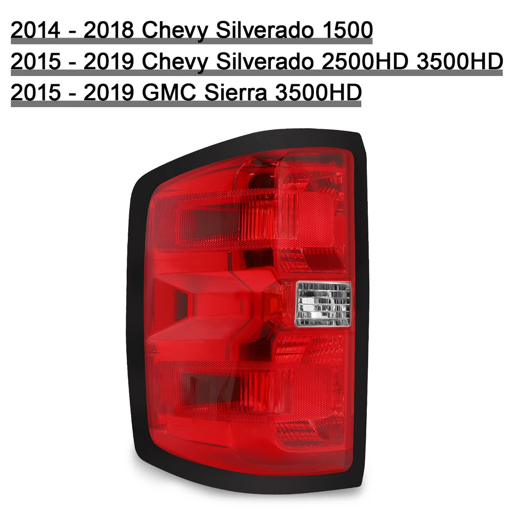 Driver Side Rear Tail Light Brake Lamp For Chevy Silverado GMC Sierra 2014-2018 Specification & Features: Condition: 100% Brand New Lens Color: Red Housing Color: Chrome Material: Plastic Placement on vehicle: Rear, Left We use excellent raw materials to produce products with OEM quality Fitment: For Chevy Silverado 1500 2014-2018 For Chevy Silverado 2500 HD 2015-2018 For Chevy Silverado 3500 HD 2015-2018 For GMC Sierra 3500 HD 2015-2018 Compatible on GMC Sierra 3500 HD Dually Models Only Not Compatible on Models w/Factory LED Tail Lights Package Includes: 1 X Tail Light (Driver Side) Contact us: Any Questions, Just feel free to contact us on eBay. We will reply you in 24 hours. Payment Shiping Policy Returns Policy Feedback Contact us Payment We accept PayPal, Google Pay, Credit Cards, and Debit Cards. Shiping Policy All Orders Will Ship Within Two Business Days.Except PR,HI,AK,GU and PO Box addresses. No local pick up All Packages Will Be Inspect Before Shipping, We Will Provide All Packing Material Needed For Your Package For Shipping Such As Boxes, Cushioning And Tape To Improve Shipping Quality. Very Important: Double check shipping address. We are not responsible for incorrect or undeliverable addresses. Returns Policy 60 Days returns satisfaction guarantee. All of Our Items Are 100% Brand New. If The Item Shows Up Defective or Broken, Please Contact Us Within 3 Business Days By Using "Ask A Question" Link Located At The Bottom of Our Listing. Your Questions/Concerns Will Be Responded Within 12 Hours Monday To Friday. Buyers May Contact us On The Weekends or Pubic Holidays And We Will Respond On The Next Working Day. We Will Offer Replacements, Exchange or Full Refund. 100% Satisfaction Guaranteed. We Will File Damage Or Lost Claim For Our Buyers Feedback We will leave a positive feeback immediately after payment is received. We appreciate a positive feedback as much as you do. If you have any issue with order,pls. contact us before leaving a feedback. We will glad to resolve your issue.Your satisfaction is our priority. Contact us If you have any concerns, Pls. feel free to contact us at any time.