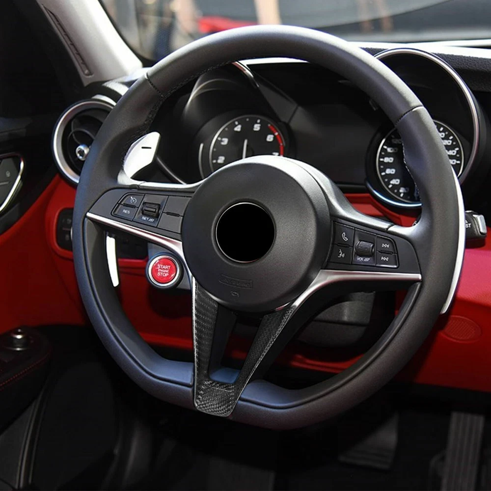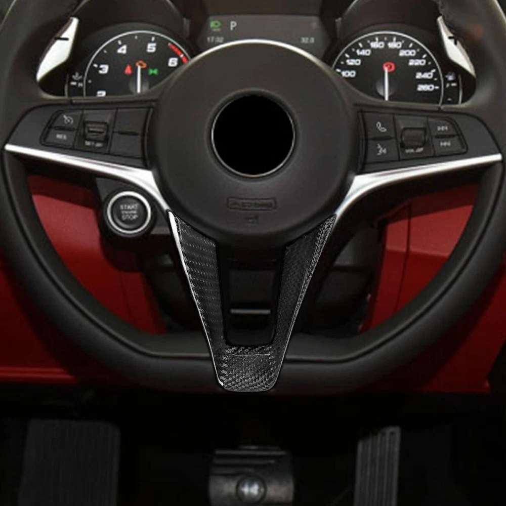 Dry Carbon Fiber Car Steering Wheel Trim for Alfa Romeo Giulia Stelvio 2017-2019