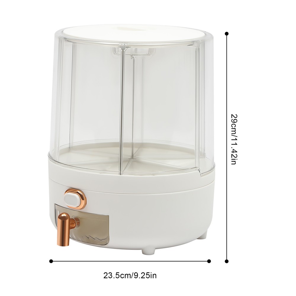 Details Protective Lid: The large lid with a concave handle can effectively prevent dust, insects, etc. from entering the interior to ensure the cleanliness of items, and is also convenient for you to open and close the item. Round Corners: The arc design can effectively care for your skin compared with the traditional square corners. Practical Dustproof Box: You can put desiccant or some spices, such as garlic, and star anise, to further protect the grain. Anti-slip Pads: The four anti-slip feet with pads at the bottom can better maintain the stability of the product and protect your countertop from scratches. Thickened Partition Board: The thickened board makes the card slot more stable and not easy to slip off. Application With a capacity of 9.92lbs, this item can Dry Food Dispenser Cereal Keeper 9.92LBS Rice Storage Container 6 Grid Rotatable Welcome Description Moldy and damp rice and grains not only cause waste but also pose a threat to our health. It's time to find a good helper. Committed to classified storage, our rice storage container with a capacity of 9.92 lbs adopts a variety of high-quality materials and exquisite injection molding technology, ensuring your long-term use. With it, the sense of ritual and happiness in life will gradually increase. Key Features Build to Last: High-quality PET, PP, and injection molding process make this product strong and durable, so it can better keep practical. Large Capacity: The overall capacity of 9.92 lbs and six independent compartments allow you to put enough rice or other items at one time by classification to fully meet your needs. Making every messy grain bottle or other items in order, so you can enjoy a cleaner environment. Elaborate Design: 360° rotatable body and rotatable handle make it easy for you to get the raw materials you need. The clear appearance provides more convenience for you to find, view the storage allowance, and add in time. The silicone sealing strip can effectively prevent articles from getting damp and mildew and keep them fresh. First in first out ensures that each grain is fresh, avoiding repeated exposure to the air, which is healthier and more convenient. Simple and Convenient: Simple structure and complete accessories allow you to quickly complete installation and start using it. You can press the button to take out the grain without opening the lid frequently. The large diameter and open top cover facilitate your daily rice adding without spilling. User-friendly Design: The independent drawer with a large capacity can not only be pulled smoothly but also achieve quantitative rice picking with the help of the handle and scales, reducing waste. Beautiful Appearance: The comfortable color(white+clear), smooth lines, and simple style make the whole product modern and fashionable. Wherever it is placed, it will be a beautiful landscape. Effortless Cleaning: The smooth surface, simple structure, and removable top cover allow you to easily remove dust and residues with a towel and water. Ideal Gift: With good performance, this product can be used as a holiday or housewarming gift for family, friends, and lovers so that they can enjoy a more convenient life. Easy to Carry and Store: The small size of 9.25*9.84 inch, stackable design, and net weight of 2.65 lbs make this product easy to store and move. Details Protective Lid: The large lid with a concave h andle can effectively pre vent dust, insects , etc. from entering the interior to ensure the cleanliness of items, and is also convenient for you to open and close the item. Round Corners: The arc design can effectively care for your skin compared with the traditional square corners. Practical Dustproof Box: You can put desiccant or some spices, such as garlic, and star anise, to further protect the grain. Anti-slip Pads: The four anti-slip feet with pads at the bottom can better maintain the stability of the product and protect your countertop from scratches . Thickened Partition Board: The thickened board makes the card slot more stable and not easy to slip off. Application With a capacity of 9.92lbs, this item can be widely used in homes, kitchens, countertops, cutlery racks, refrigerators, freezers, cabinets, closets, factories, warehouses, cabinets, grain shops, and other places to store rice, millet, black rice, yellow rice, barley, and other types of rice, mung beans, red beans, various small beans, flour, oats, sugar, nuts, dry grains, coffee beans, etc. Package Included 1* Rice Storage Container 1* Handle 4* Anti-slip Pads Specification Color: White+Clear Material: PET, PP, Silicone Surface Treatment: Injection Molding Shape: Round Style: Modern Assembly Required: Yes Mount Type: Countertop Is Dishwasher Safe: No Product Care Instructions: Hand Wash Special Feature: Airtight Number of Items: 1 Number of Compartments: 6 Rotation: 360° Overall Capacity: About6.5kg/14.33lbs Gross Weight: 1.7kg/3.75lbs Net Weight: 1.4kg/3.09lbs Package Size: 24.8*24.4*30.4cm/9.76*9.61*11.97inch Overall Size(D*H): 23.5*29cm/9.25*11.42inch Notes Please note that the specific capacity of the product depends on the size of the items. Please note that this item is not suitable for snacks, wet ingredients, and large-sized beans such as cashews and soybeans. Please keep this product away from children. Please allow the slight color difference caused by the shooting light and 1-3cm error due to manual measurement. Ple ase make sure you do not mind before you order. Payment Delivery details Terms of sales About us Contact us Payment We accept ebay payment 。 Fees such as import duties, taxes are not included in the item price or shipping costs. These charges are the buyer's responsibility. Delivery details Shipping: 2-9 working days to: USA Terms of sales We maintain high standards of excellence and strive for hundred percent customer satisfaction. Feedback is very important to us. We hope that you contact us immediately before you give neutral or negative feedback, so that w