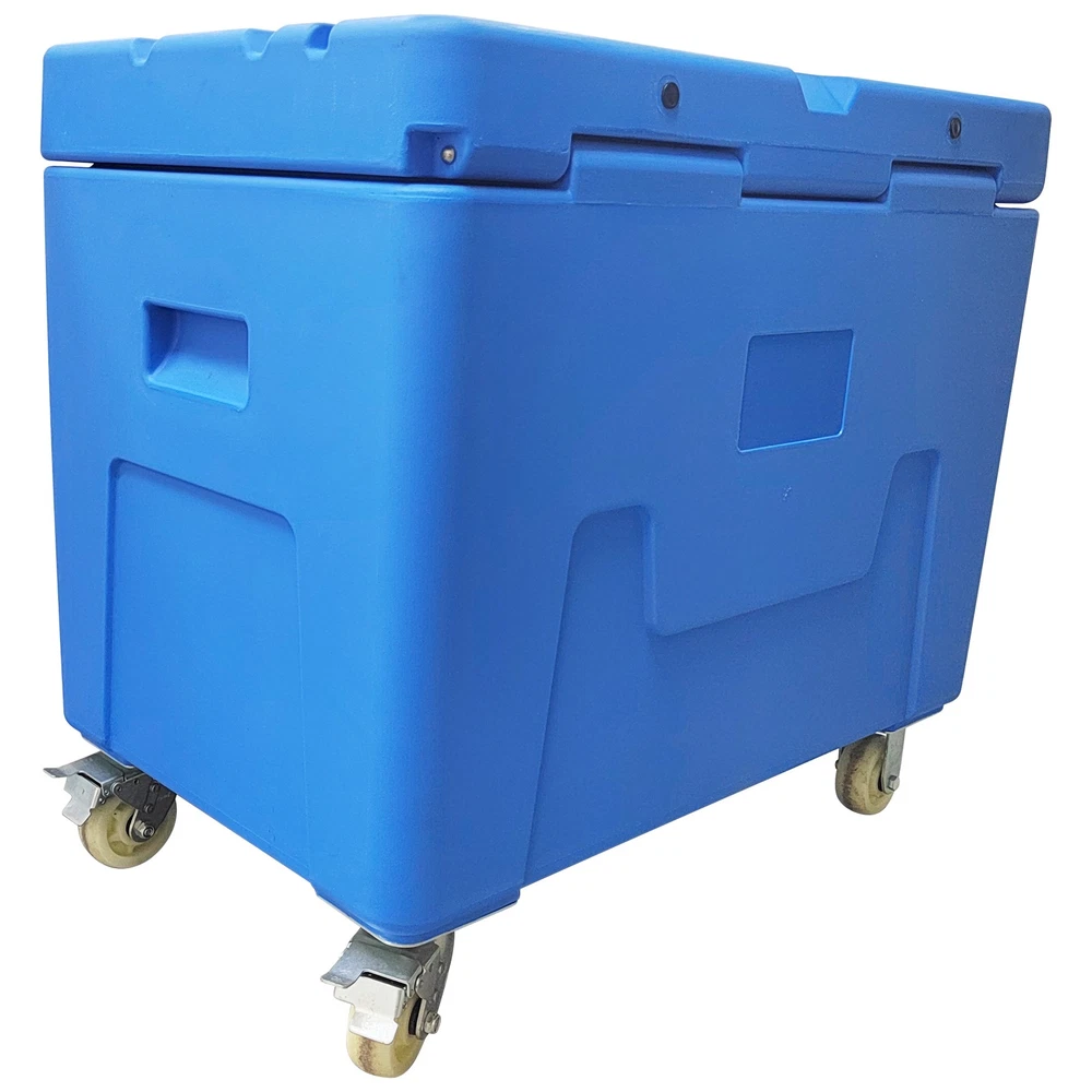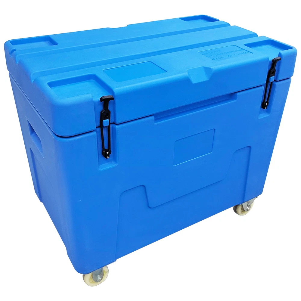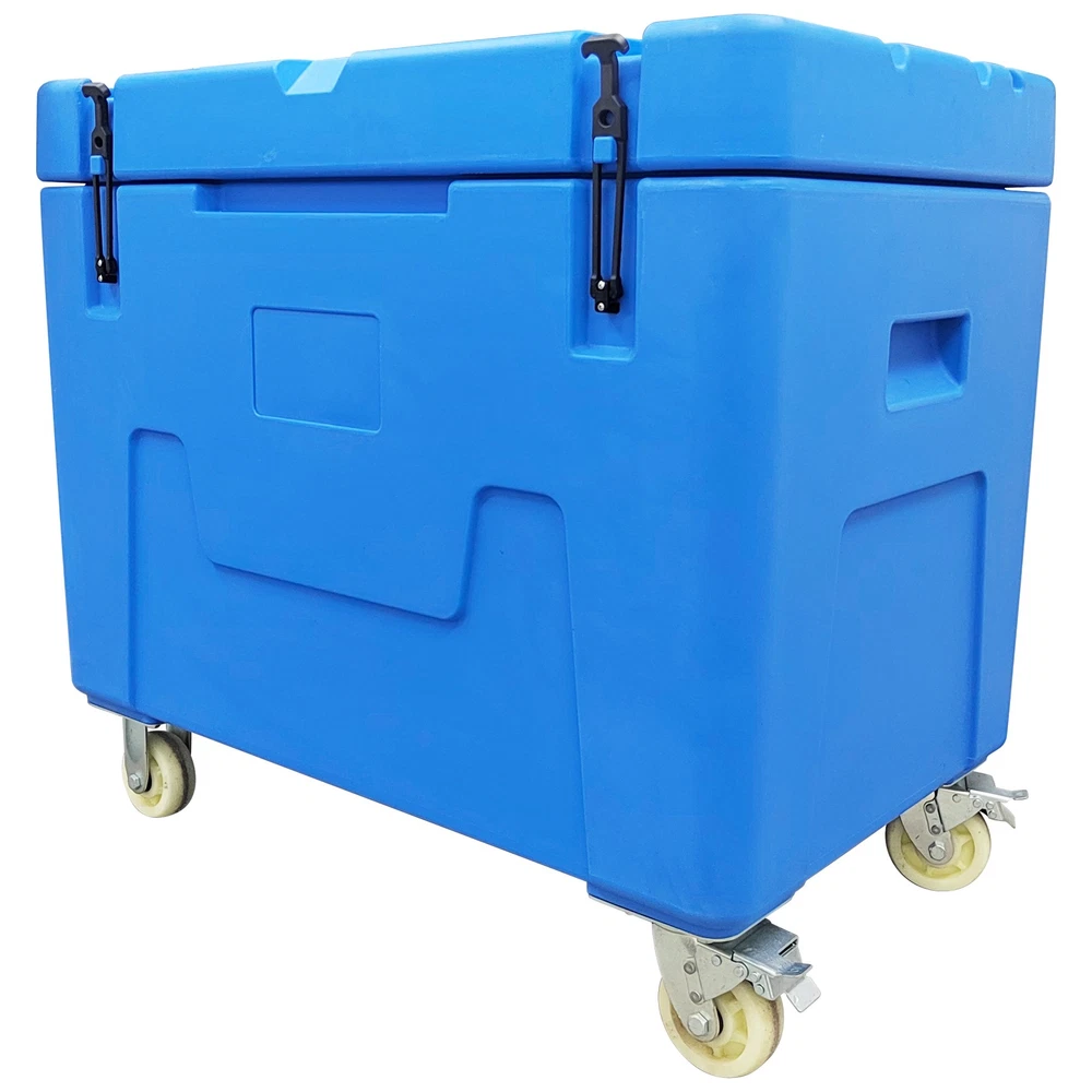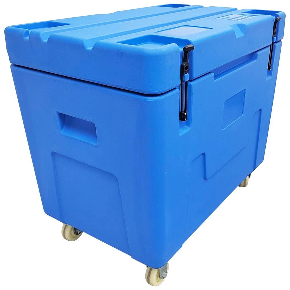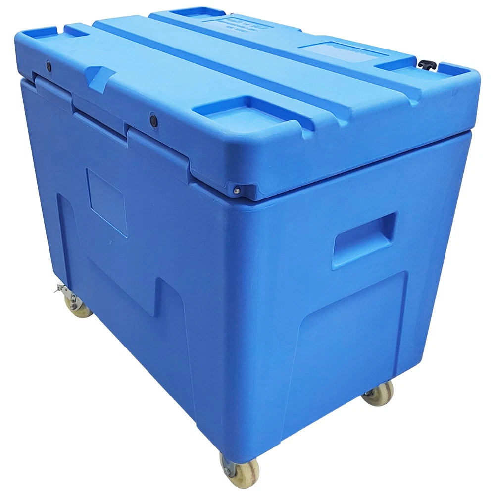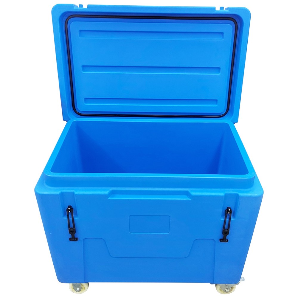 Dry Ice Storage Insulated Chest Ultra-low Temperature Storage Transportation Box This ultra-low temperature storage and transport container has a volume of 320 liters and is specifically designed for ultra-low temperature cold chain needs such as dry ice and aquatic frozen products. The box is made of high-quality, low-temperature-resistant food-grade PE material that complies with food safety standards, offering excellent thermal insulation, wear resistance, and impact resistance. Its interior space can hold up to 320 kg of block dry ice or 250 kg of pellet dry ice. The base is equipped with 2 swivel nylon wheels with brakes and 2 fixed nylon wheels, enabling flexible movement and secure positioning. It is primarily used for the ultra-low temperature transport and temporary storage of biomedical samples, cold chain foods, and aquatic frozen products, ensuring a stable deep-cold environment throughout the logistics process. Product Name Dry Ice Storage Box, Dry Ice Transfer Box External Dimensions (L*W*H) 42.9*27.1*39.3"(1090*690*1000mm) Internal Dimensions Upper Opening (L*W): 37*21.25"(940*540mm) Bottom (L*W): 36.4*20.6"(925*525mm) Height: 26.3"(670mm) Volume 11.3cu.ft. (320L) Dry Ice Capacity 551Lbs (250kg) Color Blue Thermal Efficiency 4~6% loss/24h Material Food-Grade PE Usage Requirements 1. This container is exclusively for dry ice storage. Do not store other chemicals corrosive to PE or sharp objects. 2. Handle with care during transport. Avoid dropping from height. 3. Move on even ground to prevent wheel damage from excessive jolting. Product Features & Advantages 1. Food-Grade PE Material: The container is made of food-grade PE material, which is non-toxic, odorless, and exhibits excellent low-temperature resistance. It remains flexible in ultra-low temperature environments, preventing brittleness and cracking, thereby ensuring absolute safety and hygiene for stored items. 2. 320L Large Capacity: With a 320-liter large capacity design, it can accommodate a large amount of dry ice or frozen products at one time, significantly improving single-trip transport efficiency and perfectly adapting to batch logistics and long-duration turnover operational needs. 3. Structural Design: The base is equipped with a combination of swivel casters and fixed casters, featuring a braking function. This allows for flexible movement and stable parking on slopes or during loading and unloading. 4. Thermal Insulation Performance: It provides excellent thermal insulation, with an extremely low dry ice loss rate (4-6% per 24 hours), maintaining a deep-cold environment inside the container for extended periods and ensuring product quality. 5. Durability and Safety: The material is impact-resistant and wear-resistant, and the container boasts good sealing, preventing cold air leakage and external heat ingress while avoiding pressure buildup inside caused by dry ice sublimation. Item Number Dry Ice Storage Insulated Chest 320L--148107 新建网页 3 新建网页 6 Shipping & Handling Default Shipping Cost or Free Shipping Information: Default shipping cost or free shipping service is only for the lower 48 United States by UPS Ground or USPS. Other areas or needs other shipping ways, please contact us. Buyers from Guam, Puerto Rico, Virgin Islands, American Samoa, Alaska, Hawaii, PO Boxes, APO/FPO addresses or other countries/areas, there WILL be extra shipping costs, please contact us for more detailed information. Please make sure your address is valid for both UPS and USPS services. Any costs incurred because of incorrect or undeliverable address should be undertaken by buyer. Handling Time: Shipping is usually made in 1-3 business days after payments cleared. Orders are processed from Monday-Friday; Not on the weekends & public holidays. Sales tax / Customs duties Any sales taxes or Customs duties are not included. If came out, they must be undertaken by the buyer. Damage In Shipping Email or call us First! We will work with you to get the case resolved in the fastest method. Return&Refund If you are not 100% happy with your purchase, please contact Us. Please don't directly opened a request or case without informing us, or else, we will do some discounts on the warranty and other sales-services later on. Hope for your understanding. Returns & Exchanges All returns must be made within 30 days of delivery date. Items must be in new, unused condition, with all original materials included with the shipment. A partial refund may be applied for opened or damaged items, depending on the condition. Items returned under the buyer’s remorse: The return shipping fee must be covered by the buyer; The original shipping cost will also be deducted from the refund. 15% restocking fee of the items purchase price will be charged. Returns that are the result of our seller's error: Buyer will receive a full refund of the item as well as shipping charges All returns require a RA (Return Authorization) number that will be given by our seller. Please contact with us at first for more details. Defective & Damaged Products If product was received damaged or not as described, please send us some pictures or videos, so we could well understand your problem, then solve them for you ASAP. Besides, it's much helpful for us to claim with UPS, remind our related department to pay much more attention to packaging later on. Hope for your understanding. Replacement or refund of defective or damaged products can only be returned in exchange for the exact same product, or else, the purchase price will be refunded back to your original payment method. If an item is received damaged, customer service must be contacted within 7 days of receiving your item. All returns require a RA (Return Authorization) number as above. Warranty& Feedback 6 months' warranty for the machines, not for the consumables. We stand behind our products all the item, so even if your warranty period has expired, you can still seek for service or technical support 