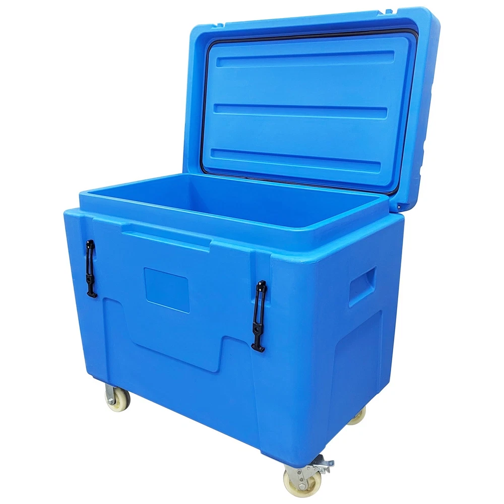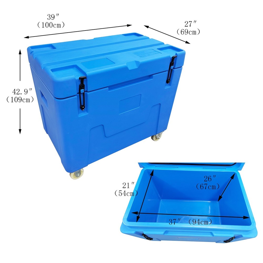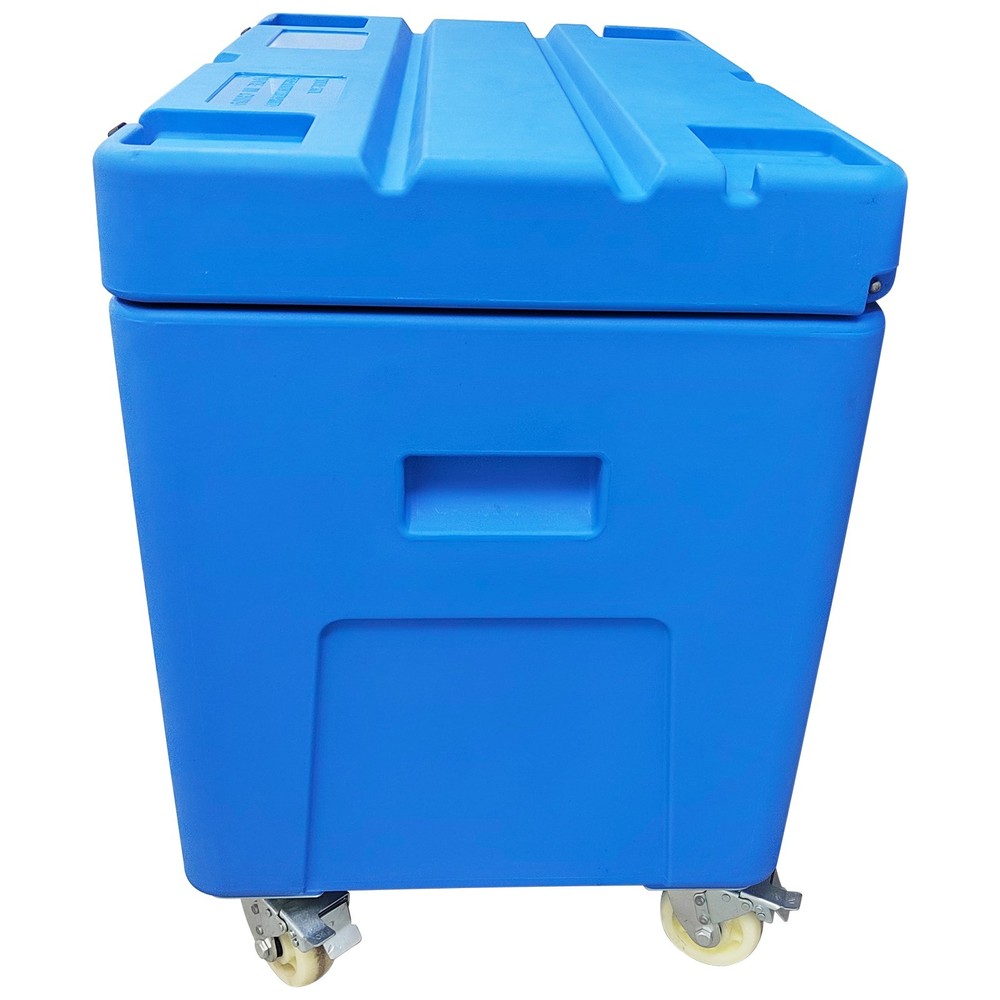 Dry Ice Storage Transfer Container Ultra-low Temperature Storage Insulated Chest This ultra-low temperature storage and transport container has a volume of 320 liters and is specifically designed for ultra-low temperature cold chain needs such as dry ice and aquatic frozen products. The box is made of high-quality, low-temperature-resistant food-grade PE material that complies with food safety standards, offering excellent thermal insulation, wear resistance, and impact resistance. Its interior space can hold up to 320 kg of block dry ice or 250 kg of pellet dry ice. The base is equipped with 2 swivel nylon wheels with brakes and 2 fixed nylon wheels, enabling flexible movement and secure positioning. It is primarily used for the ultra-low temperature transport and temporary storage of biomedical samples, cold chain foods, and aquatic frozen products, ensuring a stable deep-cold environment throughout the logistics process. Product Parameters Product Name: Dry Ice Storage Box, Dry Ice Transfer Box External Dimensions (L*W*H): 42.9*27.1*39.3"(1090*690*1000mm) Internal Dimensions: Upper Opening (L*W): 37*21.25"(940*540mm) Bottom (L*W): 36.4*20.6"(925*525mm) Height: 26.3"(670mm) Volume: 11.3cu.ft. (320L) Dry Ice Capacity: 551Lbs (250kg) Color: Blue Thermal Efficiency: 4~6% loss/24h Material: Food-Grade PE Usage Requirements 1. This container is exclusively for dry ice storage. Do not store other chemicals corrosive to PE or sharp objects. 2. Handle with care during transport. Avoid dropping from height. 3. Move on even ground to prevent wheel damage from excessive jolting. Product Features & Advantages 1. Food-Grade PE Material: The container is made of food-grade PE material, which is non-toxic, odorless, and exhibits excellent low-temperature resistance. It remains flexible in ultra-low temperature environments, preventing brittleness and cracking, thereby ensuring absolute safety and hygiene for stored items. 2. 320L Large Capacity: With a 320-liter large capacity design, it can accommodate a large amount of dry ice or frozen products at one time, significantly improving single-trip transport efficiency and perfectly adapting to batch logistics and long-duration turnover operational needs. 3. Structural Design: The base is equipped with a combination of swivel casters and fixed casters, featuring a braking function. This allows for flexible movement and stable parking on slopes or during loading and unloading. 4. Thermal Insulation Performance: It provides excellent thermal insulation, with an extremely low dry ice loss rate (4-6% per 24 hours), maintaining a deep-cold environment inside the container for extended periods and ensuring product quality. 5. Durability and Safety: The material is impact-resistant and wear-resistant, and the container boasts good sealing, preventing cold air leakage and external heat ingress while avoiding pressure buildup inside caused by dry ice sublimation. Item Included (148107): Dry Ice Storage Insulated Chest 320L *1 Shipping & Handling Details Default Shipping Cost or Free Shipping Information: ▲ Default shipping cost or free shipping service is only for the lower 48 United States by UPS Ground or USPS. Other areas or needs other shipping ways, please contact us. ▲ Buyers from Guam, Puerto Rico, Virgin Islands, American Samoa, Alaska, Hawaii, PO Boxes, APO/FPO addresses or other countries/areas, there WILL be extra shipping costs, please contact us for more detailed information. ▲ Please make sure your address is valid for both UPS and USPS services. Any costs incurred because of incorrect or undeliverable address should be undertaken by buyer. Handling Time: Shipping is usually made in 1-3 business days after payments cleared. Orders are processed from Monday-Friday; Not on the weekends & public holidays. Sales tax / Customs duties: Any sales taxes or Customs duties are not included. If came out, they must be undertaken by the buyer. Damage In Shipping: Email or call us First! We will work with you to get the case resolved in the fastest method. Return / Refund If you are not 100% happy with your purchase, please contact Us. Please don't directly opened a request or case without informing us, or else, we will do some discounts on the warranty and other sales-services later on. Hope for your understanding. Returns & Exchanges ▲ All returns must be made within 30 days of delivery date. Items must be in new, unused condition, with all original materials included with the shipment. A partial refund may be applied for opened or damaged items, depending on the condition. ▲ Items returned under the buyer’s remorse: The return shipping fee must be covered by the buyer; The original shipping cost will also be deducted from the refund. 15% restocking fee of the items purchase price will be charged. ▲ Returns that are the result of our seller's error: Buyer will receive a full refund of the item as well as shipping charges ▲ All returns require a RA (Return Authorization) number that will be given by our seller. Please contact with us at first for more details. Defective & Damaged Products ▲ If product was received damaged or not as described, please send us some pictures or videos, so we could well understand your problem, then solve them for you ASAP. Besides, it's much helpful for us to claim with UPS, remind our related department to pay much more attention to packaging later on. Hope for your understanding. ▲ Replacement or refund of defective or damaged products can only be returned in exchange for the exact same product, or else, the purchase price will be refunded back to your original payment method. ▲ If an item is received damaged, customer service must be contacted within 7 days of receiving your item. All returns require a RA (Return Authorization) number as above. Warranty & Feedback ▲ 6 months' warranty for the machines, not for the consumables. We stand behind our products all the item, so even if your warranty period has 