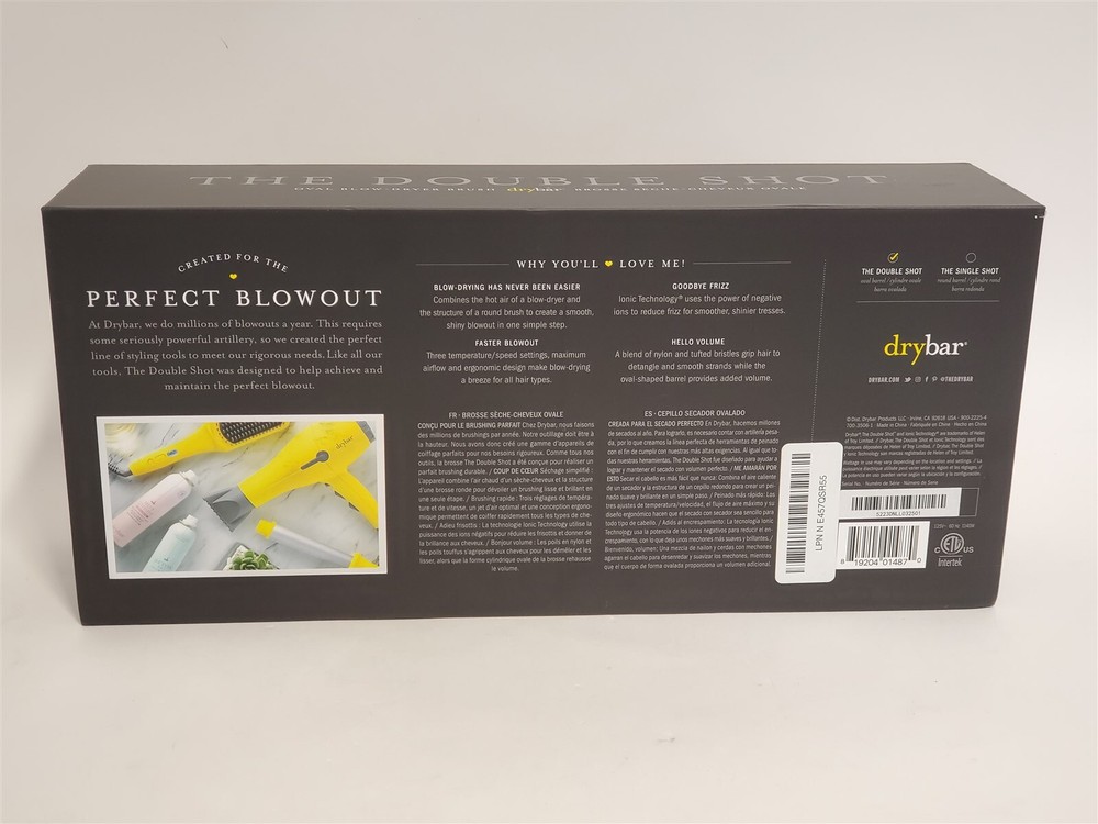Drybar The Double Shot Oval Blow Dryer Brush Blowout Brush Long Hair & Volume Condition Store Return - Excellent condition, may have been used once - Includes original packaging but there may be light damage to packaging - Guaranteed to function perfectly Features Good Housekeeping 2020 Beauty Award for Best Hair Tool Ionic Technology helps seal the cuticle for less frizz and tons of shine while styling Strategically-placed vents provide maximum airflow for a faster blowout Ergonomic, lightweight design provides maximum comfort A combination of nylon and tufted bristles allows for exceptional tension and control Oval shape with gently curved edges provides tons of volume and a smooth finish 3 temperature settings (cool/medium/high) allow for customized styling of all hair types Shipping Free shipping to the Continental United States only. Most Items will ship by UPS or Fedex. Seller may also choose to ship some items by USPS For shipping to Alaska, Hawaii, Puerto Rico or APO/FPO addresses please contact seller with your complete address for a shipping price quote All orders are normally shipped within one business day. We do not ship on weekends or holidays Return Policy Free 30 day returns Powered by SixBit's eCommerce Solution