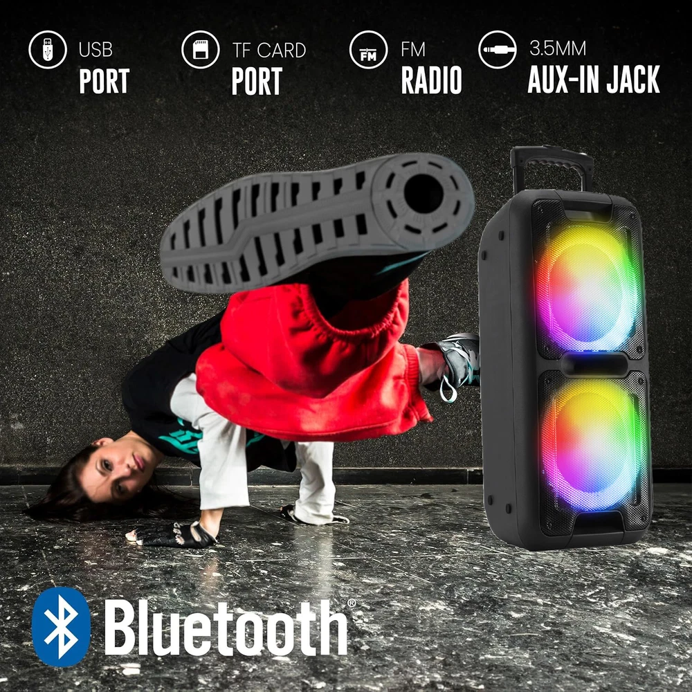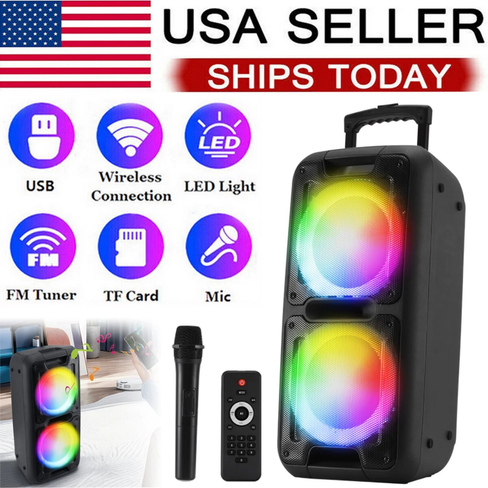 Dual 10" Woofers Bluetooth Rechargeable PA Speaker +Bluetooth +USB/SD/FM/EQ/LED There's plenty of powerful sound coming out of this Bluetooth speaker, but that's only a start in describing how this can make a party. As it plays the music, a spectrum of LED light patterns, ranging from pure white to rainbow, can pulse along to the music, syncing up with every beat.If you have music stored on a USB flash drive, simply plug it into the corresponding port, and you'll be able to easily listen to your favorite playlists. There's also an RCA line-in for connecting to CD players and other devices. With Built in Rechargeable Battery, Trolley Handle and Wheels allows you to take your Party anywhere! Features: ✨ Dynamic LED Neon Lights: Elevate your party atmosphere with vibrant neon LED lighting that syncs to your music, offering an immersive audio-visual experience. ✨ Versatile Connectivity & Playback: Stream your favorite tunes via Bluetooth, USB, SD, or Aux-in. Plus, the built-in MP3 player and two microphone inputs make it ideal for DJ sets and karaoke. ✨ Unmatched Sound Quality: Experience powerful, room-filling audio with the speaker's dual 10" woofers and X-Bass technology, delivering crisp, thunderous sound perfect for parties, outdoor events, and karaoke nights. ✨ Portable Design for Easy Transport: Featuring a trolley design with durable wheels and a retractable handle, the Speaker built for easy mobility, making it perfect for indoor and outdoor use. ✨ Complete Entertainment Package: Comes equipped with a wireless microphone and remote control, allowing you to manage your music and engage your audience from anywhere in the room. Specifications: Color: Black Material: molded PP plastic cabinet Charging time: 5-8 hours Play time: 6 hours (fully charged) Input Voltage: AC 110-240V 50/60Hz Output Power: 100W Battery Capacity: 12V/7A Rechargebale Battery Product Unit Size: 72*34*32cm/28.3*13.4*12.6inch Package Include: 1 X Dual 10in Speaker 1 X Wireless Microphone 1 X Remote Control 1 X 3.5mm to RCA Cable 1 X Power Cable 1 X Manual Payment Delivery details Terms of sales Feedback Contact us Payment Immediate payment is required. Shipping will be arranged within 1 business day once payment is cleared. To uphold a shipping speed, your order will be processed almost immediately. If you change your mind after your payment is confirmed, we will do our best to cancel the order, however, we CANNOT guarantee the cancellation. Delivery details FREE SAME BUSINESS DAY MONDAY- FRIDAY SHIPPING FROM USA. No shipping on Weekends or US Public Holidays. No responsibility for any custom duty. We will ship your order to your Ebay Verified address provided. Please verify your address and make sure that it is your current address before making your payment. Any address change requests after your payment CANNOT be guaranteed. Shipping information will be updated when available. All of our products can be shipped internationally. To confirm the shipping rates to your country please refer to eBay's Shipping Tab above. Any brokerage, customs, and duty fees associated with international shipments are the customer's responsibility and are not included in our shipping fee. A phone number is required for the customs documents. Failure to provide one will result in delays. We do not include an invoice or any advertising materials with our shipments. Terms of sales We stand behind our items and offer 60 days warranty. All items are in new and working condition unless specified otherwise elsewhere in the description. All Returns - defective or otherwise - MUST BE PREAUTHORIZED to guarantee refund or exchange. Please contact us to get an authorization and return address. Buyer agrees to pay for the cost of re-shipment for undeliverable or wrong addresses. Buyer is responsible for Return Postage if return/replacement is not a result of our mistake such as wrong item. Replacement or Refund will be made upon receipt of the returned item. Please include tracking number so we can process ASAP. If you do not wish to wait for a replacement, please repurchase the item. Feedback We strive to provide the best products and services. Your positive feedback 5 stars DSR help us do better. If anything about your transaction did not meet expectations, please CONTACT US and give us the opportunity to make things right. We are always here to help. Contact us Please do not hesitate to CONTACT US . You can message 24/7 on eBay for all questions and inquiries. We will get back to you within one business days at the latest from Monday- Friday.