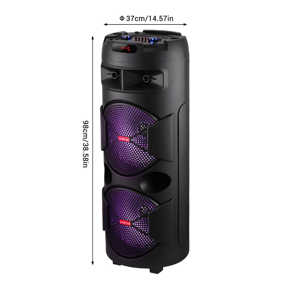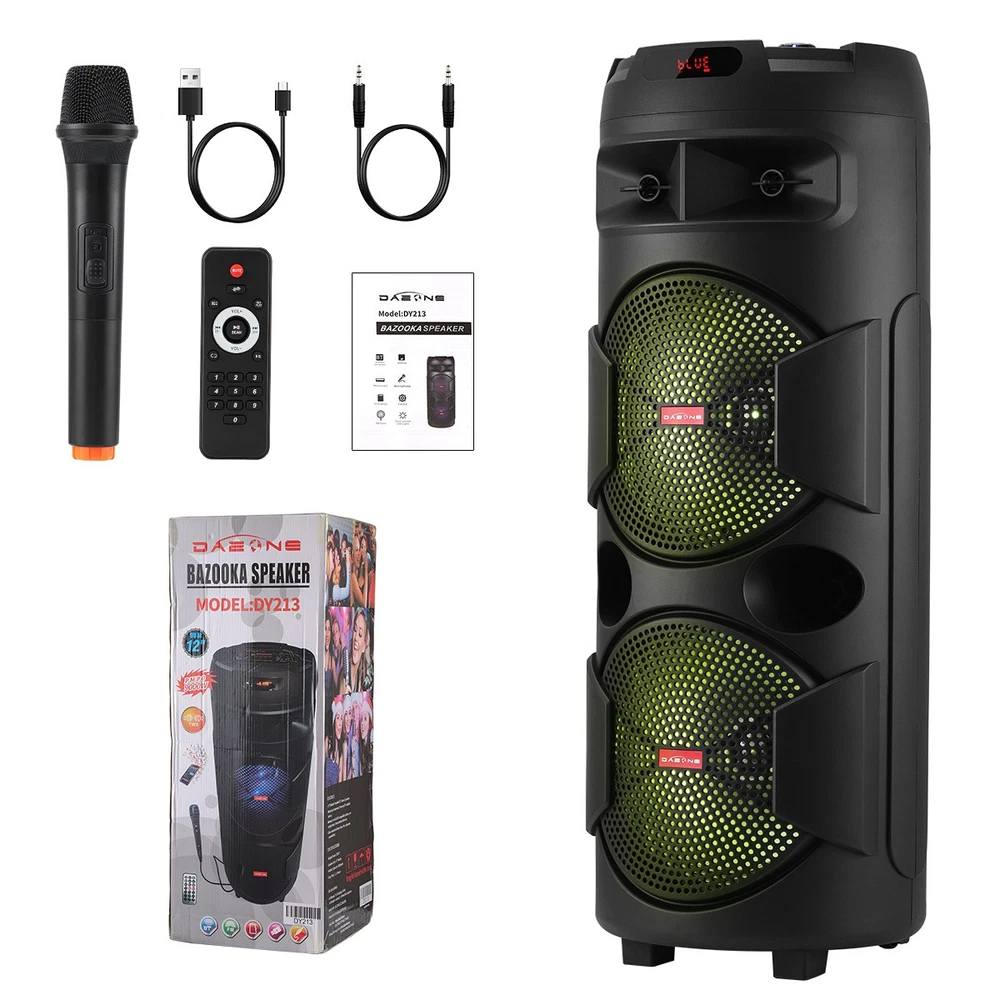 Dual 12" Portable Bluetooth Speaker Audio System w/Wireless Mic AUX/FM/TF/TWS US Feature: Material: ABS plastic Color: Black Speaker: 12 inches * 2 Battery capacity: 3600mAh Power: 20W * 2 Bluetooth connection range: < 10m Input voltage: DC 5V 1A Charging time: Fully charged in about 5-6 hours, maximum volume playback usage time is approximately 50 minutes Function modes: Bluetooth, AUX, FM mode, TF card, USB, TWS connection, TWS function: Supports 2 audio devices (same motherboard) to be connected in series, one mobile phone can only connect to 1 audio device Built-in battery (4 cells) 18650 7.4V 3600mAh Bluetooth chip: AB Package Include: 1 X Dual 12-inch speakers 1 X Remote control 1 X TYPE-C charging cable 1 X 3.5mm audio cable 1 X Wireless microphone 1 X English manual Contact us: Payment: Shipping: Warranty Return Contact us: We have always been trying to provide the best service and reliable products for every customer, however, accident may happen sometimes, please contact us to resolve any issue before leaving a negative feedback. Payment: 1. All payments must be prepaid before shipping. 2. We only accept payment via PayPal. Please kindly check if you can do the payment via PayPal before placing an order. Shipping: 1. Item will be shipped same business day if paid 4 pm EST 1 pm PDT (except weekends and holidays) and shipped from US. 2. Orders from the United States will all be shipped out via starnding shipping or economy shipping. The shipment usually takes 3-7 business days(Saturday and Sunday excluded), if you need the item urgently, please contact us for detail before purchase. Orders from overseas will be shipped via DHL Express, 3-5 business days. 3. Local pick up is not available. Warranty . The warranty shall not apply to the following circumstances: a) Damage caused by undue wear&tear, misuse, improper installation or operation, neglect, accidents. b) Damage caused by natural disasters, flood, fire, lightning or pollution. c) If item was opened, any parts removed or repaired by any unauthorized person. Return (1).We stand behind our items and offer 60 days warranty. All items are in brand new condition unless specified otherwise elsewhere in the description. (2).All returns - defective or otherwise - have to be preauthorized. Please contact us to get an authorization and returning address before sending the item back.If an item is returned because of an undeliverable shipping address, buyer agrees to pay the cost for re-shipment. (3).Please note that If the return/replacement is not a result of our mistake (not defective or wrong item), the buyer is responsible for return shipping, as well as a 20 percent restocking fee. (4).Replacement or refund will be made upon receipt of the returned item. If you do not want to wait for the replacement, you can just reorder one and then send the first one back for a refund.