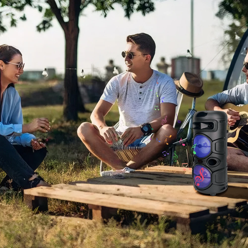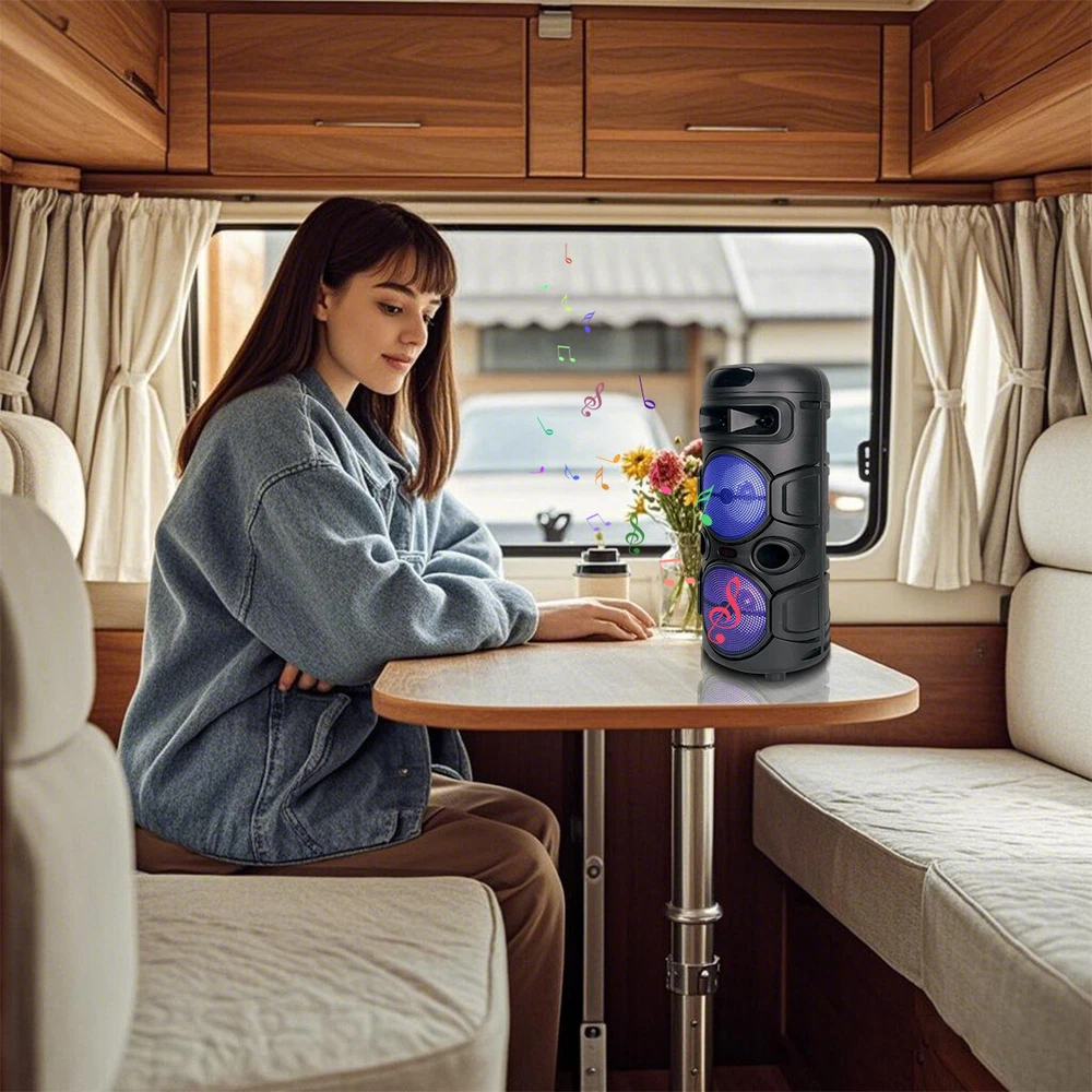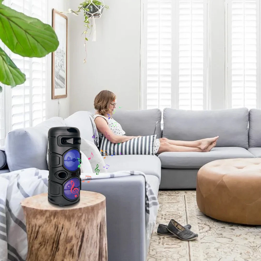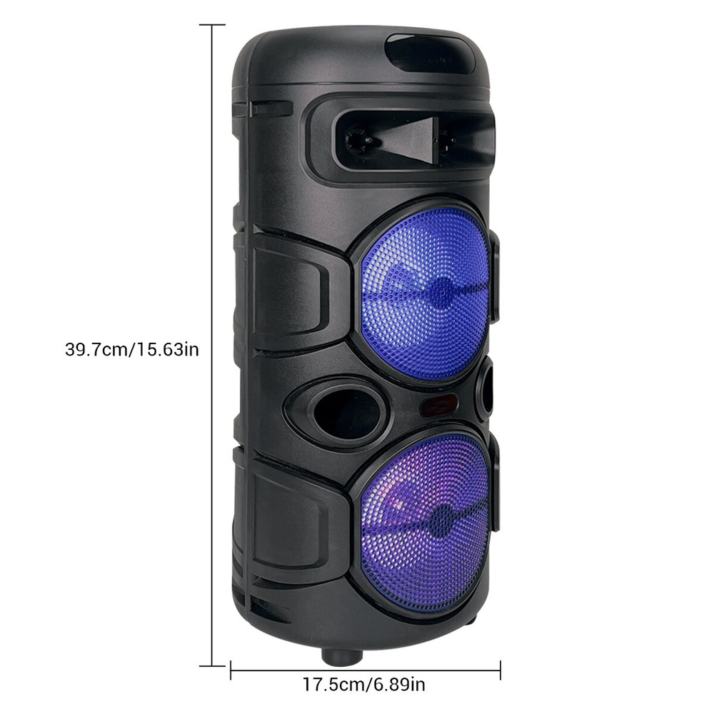 Dual 8 Inch Portable Bluetooth Party Speaker with Subwoofer Mic Remote LED Lights TWS FM