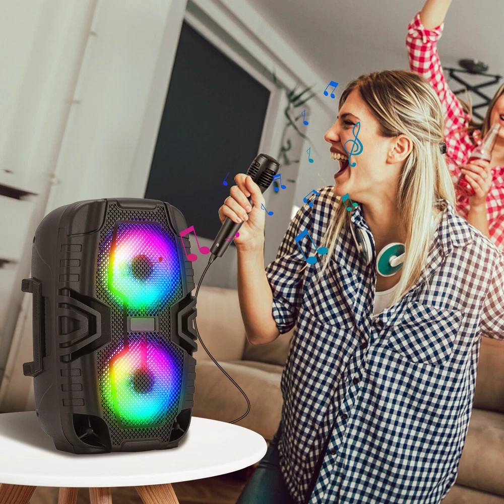 Dual 6" Bluetooth Speaker PA System Rechargeable W/ Wired Mic TWS/FM/USB/TF Features: Powerful Sound with Dual 6” Woofers : Experience deep bass and crystal-clear audio for any event. Bluetooth & Multi-Input Connectivity : Connect wirelessly via Bluetooth or use USB, TF card, FM radio, or AUX for versatile playback. WaveSync & TWS Pairing : Pair two speakers for double the sound and an enhanced stereo experience. 🎁 Cool lights/perfect gifts - Cool lights dance with you! The light bar that dances with the music allow you to participate in the singing and joyful atmosphere and dance together. The light on the bluetooth speaker can be like going to a disco party after turning off the lights! The buttons are easy to operate and look good, making it a perfect Christmas gift for your friends and children. Rechargeable Battery & USB-C Charging : Get up to 7 hours of playtime with fast USB-C charging for on-the-go entertainment. Specifications: Material: ABS Color: Black Bluetooth Model: ABX-2260R Speaker Size: 6 inch *2 Output: 8w Function: Bluetooth, USB, TF card, FM mode, AUX, TWS Battery Capacity: 3.7V 1800mah Package Includes: Dual 6-inch Bluetooth Speaker*1 Wired Microphone*1 Mirco USB Charging Cable*1 English Manual*1 Payment Delivery details Terms of sales Feedback Contact us Payment Immediate payment is required. Shipping will be arranged within 1 business day once payment is cleared. To uphold a shipping speed, your order will be processed almost immediately. If you change your mind after your payment is confirmed, we will do our best to cancel the order, however, we CANNOT guarantee the cancellation. Delivery details FREE SAME BUSINESS DAY MONDAY- FRIDAY SHIPPING FROM USA. No shipping on Weekends or US Public Holidays. No responsibility for any custom duty. We will ship your order to your Ebay Verified address provided. Please verify your address and make sure that it is your current address before making your payment. Any address change requests after your payment CANNOT be guaranteed. Shipping information will be updated when available. All of our products can be shipped internationally. To confirm the shipping rates to your country please refer to eBay's Shipping Tab above. Any brokerage, customs, and duty fees associated with international shipments are the customer's responsibility and are not included in our shipping fee. A phone number is required for the customs documents. Failure to provide one will result in delays. We do not include an invoice or any advertising materials with our shipments. Terms of sales We stand behind our items and offer 60 days warranty. All items are in new and working condition unless specified otherwise elsewhere in the description. All Returns - defective or otherwise - MUST BE PREAUTHORIZED to guarantee refund or exchange. Please contact us to get an authorization and return address. Buyer agrees to pay for the cost of re-shipment for undeliverable or wrong addresses. Buyer is responsible for Return Postage if return/replacement is not a result of our mistake such as wrong item. Replacement or Refund will be made upon receipt of the returned item. Please include tracking number so we can process ASAP. If you do not wish to wait for a replacement, please repurchase the item. Feedback We strive to provide the best products and services. Your positive feedback 5 stars DSR help us do better. If anything about your transaction did not meet expectations, please CONTACT US and give us the opportunity to make things right. We are always here to help. Contact us Please do not hesitate to CONTACT US . You can message 24/7 on eBay for all questions and inquiries. We will get back to you within one business days at the latest from Monday- Friday.