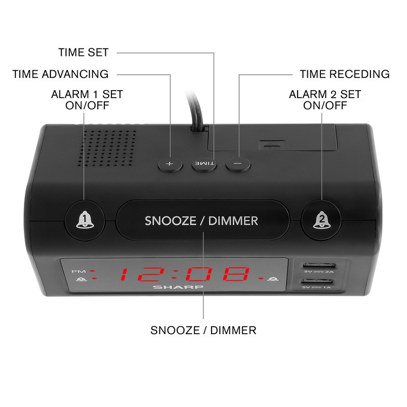 You may also like SmartSet Dual Alarm Clock Radio Bluetooth Speaker USB Port LED Pulse Music 37.87 USD 39.86 USD Free shipping 5% off Insta-Set LCD Alarm Clock W/ Snooze Backup Battery Day of Week Indicator New 23.86 USD 25.12 USD Free shipping 5% off Wooden Digital Alarm Clock W/ Wireless Charger Voice Control 3 Alarms Display US 35.32 USD 37.18 USD Free shipping 5% off Digital Alarm Clock Green LED Backup Snooze Easy Set Bedside 8 Min Beep New 27.3 USD 28.74 USD Free shipping 5% off Electric Night Table Clock Easy Read LED Display Snooze Battery Backup New 23.39 USD 24.62 USD Free shipping 5% off Wireless Charging Dual Alarm Clock Radio LED Display Temperature Sensor FM Radio 29.65 USD 31.21 USD Free shipping 5% off 4 in 1 Digital Alarm Clock W/ Temperature Humidity Display & Beep Alarm New 31.81 USD 33.48 USD Free shipping 5% off Digital Alarm Clock Adjustable Volume Snooze Battery Backup Bedside Desk New 16.26 USD 17.12 USD Free shipping 5% off Sunrise Simulator Alarm Clock Dimmable Night Light Snooze Function LED Display 27.06 USD 28.48 USD Free shipping 5% off Digital Alarm Clock Snooze Function Battery Powered LED Display Home Decor Gift 22.51 USD 23.7 USD Free shipping 5% off Digital Travel Alarm Clock Fold-up Snooze Timer Backlight Battery Operated New 19.12 USD 20.13 USD Free shipping 5% off LED Dinosaur Alarm Clock Color Changing Snooze Display 8 Alarm Options New 16.5 USD 17.37 USD Free shipping 5% off Reduce the clutter on your nightstand with this compact and stylish alarm clock that charges 2 phones and provides 2 alarm settings. The Dual alarm clock with 2 Charge ports charges your phone while you sleep! The digital alarm clock is always on so when you wake up in the night, you can see the time display. Use this clock to set two alarms - one for you and one for your partner or set them both for you! Use the optional battery back up and see the time restored once the power returns. 2 USB Charging Ports Two Alarm Settings 1 x 2 Amp: 1 x 1 Amp Digital Adult You may also like High Baby Chair Folding Safety Full Size Adjustable Seat Comfortable Child Home 71.15 USD 74.89 USD Free shipping 5% off 15W Wireless Ultra Fast Charging Dual Alarm Radio Bluetooth Speaker USB Display 44.23 USD 46.56 USD Free shipping 5% off Countertop Room & Cold Water Dispenser W/ LED Status Light Filter System Kitchen 79.57 USD 83.76 USD Free shipping 5% off 30-inch 3-Tier Free-Standing Bathroom Shelf Floor Cabinet 30 lbs.Capacity,Bamboo 46.45 USD 48.89 USD Free shipping 5% off Corner Tool Tower Storage Rack Organization Garden Tool Workshop Garage Black US 41.04 USD 43.2 USD Free shipping 5% off Slim Laundry Basket Cutout Handles Lid Brown Both Spacious Stylish 40 Liter 44.57 USD 46.92 USD Free shipping 5% off Large Folding Iron Board Lightweight Nonslip Adjustable Height Ironing Boards 94.9 USD 99.89 USD Free shipping 5% off 2 in 1 Soldering Iron Hot Air Rework Station °F /°C with Multiple Functions 75W 165.14 USD 173.83 USD Free shipping 5% off 3 Drawer Weave Tower Plastic Storage Containers Living Room Bedroom Set of 2 Hot 46.86 USD 49.33 USD Free shipping 5% off 8-Piece White Bed in A Bag Microfiber Bedding Set Comforter Set Bedroom Queen 69.96 USD 73.64 USD Free shipping 5% off Personal Tower Fan Small Room Adjustable Air V Flow Circulator 4 Speeds Black 40.6 USD 42.74 USD Free shipping 5% off Traditional 5 Shelf Bookcase Shelf Cabinet Cupboard with Doors Adjustable, Black 82.98 USD 87.35 USD Free shipping 5% off