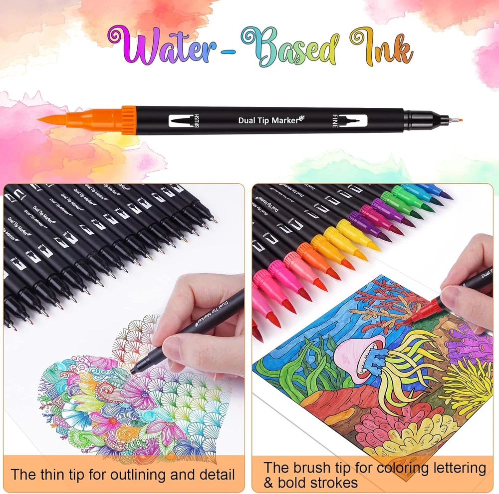 Store New Arrivals Add to Favorite View Feedback Contact Fast deliveries to the customer's home Quality customer service John Make the customers happy! Dual Brush Marker Pens, 72 Colors Art Markers Set with Fine and Brush Tip for Kids Adult Coloring Book Bullet Journaling Note Taking Planner Hand Lettering Calligraphy Drawing Art Supplies Kit Description DUAL TIP MARKER DESIGN: The 0.4mm fine tip is suitable for drawing relatively thin lines, you can use it for writing records and some designed line drafts; 1-2mm brush tip works well for coloring books, signing, design, art project and hand lettering.The design of the dual tip makes your drawing process more convenient and easy 72 UNIQUE COLORS: This complete set of dual brush tip pen art markers comes with a whopping 72 unique and vibrant color options to choose from, NO duplicate. Fully meet the painting needs of beginners, rich and vivid colors arouse your artistic creativity QUALITY INK: Odorless and harmless, water-based ink, easy to wash on clothes and skin. All brushes and fineliner work well with no skipping or ink flow issue. Please put on pen caps timely after every use to avoid the tips drying completely GREAT PRESENT: Our colored markers is an ideal art set present for family, friends and all skill level children in Birthdays, Thanksgiving, Christmas etc. Perfects for adult coloring books, sketch, illustrations, drawing, planner, journal, notebook, calendar, signing, manga, animation, graphic, design, art project and more PACKING LIST: 1 x Portable Case, 72 x Coloring Markers, 1 x DIY Coloring Book, 3 x Bonus Brush Tips & 3 x Bonus Fineliner Tips.The coloring markers are packaged in a durable and attractive case, offering enhanced protection for the pens during transportation. The built-in elastic cord secures the dual brush marker pens in place, making them convenient to carry, the outer zipper with stitching is easy to open and close Product Description Item Weight 1.76 pounds Number of Items 72 Color 72 Colors Line Size 0.4-2 Millimeters Ink Color Multicolor Recommended Uses For Product Coloring, Drawing, Marking Out, Calligraphy, Writing, Painting Point Type Fine & Brush Package Dimensions 10.75 x 7.13 x 2.13 inches Size 1 Count (Pack of 72) ABOUT US We offer the best prices around on high quality products. Our E-store includes media such as books, movies, music and games while offering electronics, toys, sporting apparel, clothing, tools, general home, garden items and more. SHIPPING We are always working hard to ensure your package arrives as soon as possible. Please understand that some factors like weather, high postal traffic, and the performance of shipping companies are outside of our control. We offer free shipping to the lower 48 states and ship within 2 business days of payment, usually sooner. We do not accept P.O. Boxes. Please provide a physical address. For shipping outside of the continental USA, we only use eBay's Global Shipping Program. The item is shipped to KY and then sent to the rest of the world. International customers are responsible for all duties and taxes. Continue to 'check out' to calculate costs for shipping the item to your country. Messages regarding eBay's Global Shipping Program MUST be directed at eBay EXCLUSIVELY. RETURNS We offer a 30-Day Return Policy on items in which you are not completely satisfied with. You have the option of a full-refund or an exchange of the item. No returns are available on items shipped outside of the USA PAYMENT We accept PayPal. CONTACT US This page content is yet to come Please ad us to your favorite seller and visit again later Thank You CUSTOMER SATISFACTION We try our very best to make sure every customer is completely satisfied. If there's a problem, message us! We're happy to help. WE ACCEPT