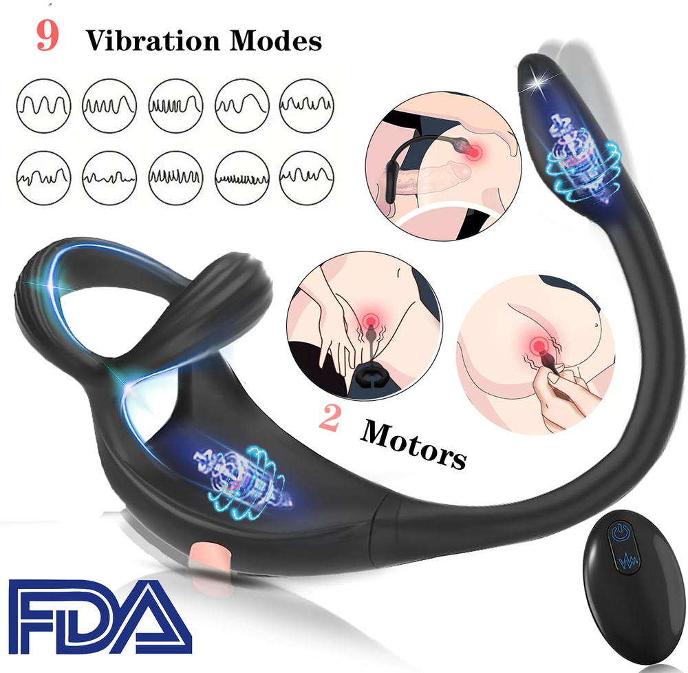 Vibrating Cock Ring Anal Vibrator Butt Plug Prostate Massager Sex Toys For Men <> <> <> Product Description: About this item π[Vibrating Cock Ring + Taint Stimulator + Mini Anal Plug Combo for Explosive Climaxes] Stimulating your cock, balls, taint, butt, and prostate in 4 erogenous zones all at once, this penis ring-butt plugs combo results in stronger, and more fulfilling climaxes that are difficult to achieve with traditional prostate toys. π[Mini Vibrating Butt Plug Best For Freshman] With the tapered tip design, the product can be easily and smoothly inserted into your tight anus. The soft connection cord is convenient to pull out to prevent the bullet from sliding into your body, ensuring a safe user experience. With a finger-sized shape, the vibrating anal plug can satisfy all your curiosity about anal pleasure. π[Golden Angle Vibrating Penis Ring for Longer Harder Stronger] The 3 in 1 cock rings can grip your dick, balls, and the base of your shaft. The reasonable distance and gold angle between penis rings make sure they can do a firm wrapping to the right places and help you become longer, harder, and stronger. Our cock ring adopts an ergonomic curve to let you wear it more comfortably and precisely stimulate your perineum. π[Dual Motors - 9 Powerful Vibrations] Equipped with two powerful vibrating motors, there are 9 vibration patterns for you to choose from. Let you experience a variety of different ways to play, from gentle to wild. Despite its strength, we've carefully engineered it to be whisper-quiet, allowing you to fully immerse yourself in the moment without any distractions. π[Versatile Anal Toy for Solo & Couples Play] Whether you're enjoying a solo play or engaging with your partner, this device can offer incredible versatility. It's perfect for solo play, you can also use the front vibrating egg to stimulate your sensitive glans. The cockring with a prostate massager can be worn during sex. It can provide individual stimulation to your partner's G spot or P spot during intimate interactions for synchronized mixed climaxes. Package Contents 1 x Vibrator 1 x Instruction User Manual Product Description2οΌ Play Video