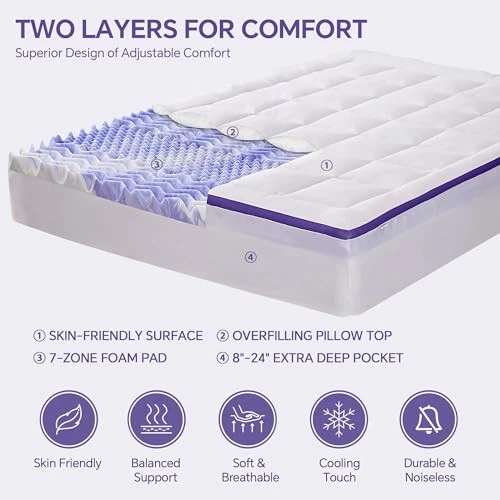 Return Policy Fast Delivery Trusted seller Dual Layer Memory Foam Twin XL Mattress Topper - 2 Inch Gel Egg Crate Foam and 2 Inch Cooling Pillow Top Cover Rayon, Twin Extra Long College Dorm Support for Back Pain Product Description Dual-Layer Design: Our mattress topper features a 2-inch cooling gel-infused memory foam pad and an additional 2-inch quilted pillow top cover filled with ultra-soft down alternative fiber. Comfortable Support: The 35D foam with an egg-crate pattern provides cushioning and pressure-relieving support, making it ideal for those with chronic pain. The topper molds to your body shape, distributing weight evenly for ultimate support. Cooling & Breathable: The ultra-soft fabric and premium gel-infused memory foam create a cooling and breathable sleep environment without noise or movement. Removable & Washable: The mattress topper comes with a skin-friendly, removable mattress cover that is machine washable and tumble dry low for a fresh and hygienic rest. Luxurious Sleep Experience: offers a commitment to providing exclusive, comfort-driven creations. Before first use, place the mattress cover in a well-ventilated area for 24-48 hours until it fully rebounds. Any slight new foam smell will dissipate over time. Shipping Returns Payment Shipping Shipping is FREE to all addresses other than APO/PO boxes in the lower 48 states. All our stock ships from US-based warehouses. Shipped via USPS or UPS (depending on location and package weight) Unless stated otherwise, all orders will ship within 24-72 hours of your payment being processed. Check our feedback to see the great reviews of FAST shipping we offer. Returns Seller does not accept returns Payment We currently accept payment via eBay managed payments only. Once payment is cleared, we will dispatch your shipment within 1-3 business days. Please refer to the "Shipping" tab for more information regarding shipping speed to your destination.
