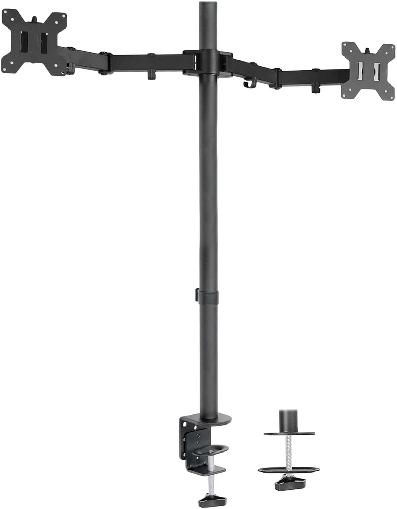 Product Description Dual Monitor Stand Up Desk Mount Extra Tall 39 Inch Pole, Fully Adjustable Stand For Up To 27 Inch Screens, Black, Stand-V012 Fits 13" To 27" Screens - Extra Tall Dual Monitor Mount Fitting Two Screens 13” To 27” In Size And 22 Lbs In Weight Each With 75X75Mm Or 100X100Mm Backside Mounting Holes. Mounts To Desks (Up To 3.5" Thick) With Heavy Duty C-Clamp Or Optional Grommet Mount. Extra Tall Pole - The 39” Center Pole Allows You To Adjust The Monitors Between Sitting And Standing Positions. Integrated Cable Management Is Included To Keep Av And Power Cords Clean And Organized Via Clips Along The Arm And Center Pole. Articulation & Height Adjustment - The Adjustable Mount Offers +90° To -90° Tilt, 180° Swivel, 360° Rotation, And Height Adjustment Along The Center Pole For Optimal Screen Positioning. Monitors Can Be Placed In Portrait Or Landscape Orientation. Easy Installation - Mounting Your Monitors Is A Simple Process With Detachable Vesa Bracket Plates. We Provide A Step-By-Step Manual And The Necessary Hardware For Assembly. We'Ve Got You Covered - Sturdy Steel Design Is Backed With A 3 Year Manufacturer Warranty And Friendly Tech Support To Help With Any Questions Or Concerns. About Us We are a reputable seller with many years of experience selling on eBay. Our goal is to provide high-quality products and excellent customer service. Shipping Items will be shipped within 1-3 business days when we received payment. (Orders are not processed on weekends & holidays) Tracking information will be sent once item is shipped. Delivery time depends on destination and other factors Item is shipped to ebay address. Leaving correct address can minimize delay. For international shipping and shipping to Guam, Hawaii and Alaska, Please contact us before placing the order. International buyers please note: Import duties, taxes and charges are not included in the item price or shipping charges. These charges are buyer’s responsibility. We will try our best to reduce the risk of the custom duties. Local pick-up is unavailable at the moment. Contact Us We reply any email messages within 1 business / working days(off-duty at weekend). If you do not get a response from us, then please check your junk or spam mailbox. Our Business hours: Mon-Fri 9:00-18:00, UTC/GMT +8 hours. Please contact us either by clicking "contact seller" in the "purchase history" section or simply click "ask a question" at the bottom of this page. If you are unsatisfied with our item or service, please contact us before leaving any feedback. We are committed to resolve all issues in a friendly and satisfactory manner.
