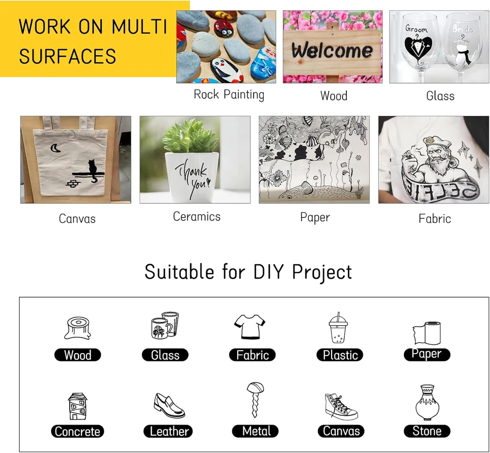 Store New Arrivals Add to Favorite View Feedback Contact Dual Tip Acrylic Paint Pens Markers, 8 Pack Black Paint Pens for Wood, Canvas, Stone, Rock Painting, Glass, Ceramic Surfaces, DIY Art Supplies (Black) Description Item model number 8 Item Weight 3.2 ounces Number of Items 8 Color 8 Black Brand YullTaiy Line Size 3 millimeters Manufacturer Part Number 8 Ink Color Black Recommended Uses For Product function(f) {var _np=(window.P._namespace("DetailPageProductOverviewTemplatesJava"));if(_np.guardFatal){_np.guardFatal(f)(_np);}else{f(_np);}}(function(P) { P.when('A').execute(function(A){ A.on('a:truncate:po-attribute-truncate-4:updated', function(data) { var isTruncated = !data.truncateInstance.getIfTextFits(); var seeMoreElement = document.getElementById('po-attribute-see-more-id-4'); if(seeMoreElement) { seeMoreElement.style.display = isTruncated ? '' : 'none'; } }) }); })); Rock_Painting, Stone, Wood, Ceramic, Glass, Fabric, Metal, Plastic, Canvas, Terra_Cotta, Polymer_Clay, Halloween_Pumpkin_Painting, Christmas_Card, Scrapbook, Bullet_Journal, Brush_Lettering, Greeting_Card See more Manufacturer Yulltaiy Point Type Chisel Package Dimensions 6.89 x 4.41 x 0.67 inches Size 1 Count (Pack of 8) [ Affordable Replacement ]- When you run out of the black acrylic paint pen in your acrylic paint markers set, it is an affordable and convenient way to buy this product as a replacement instead of buying a new set. [ Dual Tip Design ] Our acrylic paint markers come with a 3mm Medium Tip and a 0.5-6mm Brush Tip. Dual tip design meets different coloring needs, the medium tip is great for large areas of painting and coloring, and the brush tip works well for painting, drawing, calligraphy, lettering and sketching. [ Easy Use ] These acrylic pens use cotton nibs for direct writing without the need for pressing or shaking, dry faster. Water-based and opaque ink, Great Coverage, Water & Fade resistant. Note: After each use, please cover the pen cap tightly and place it horizontally. [Quick-Drying and Sun-Proof ] Our acrylic markers are designed with a fast drying formula, allowing you to layer without waiting for a long time. In addition, ink has sun protection properties and can maintain color vitality even outdoors, allowing you to freely create in the field of art. [ Multi-Purpose ] Enjoy creative fun on various material surfaces, including rock painting, stone, wood, ceramic, glass, fabric, metal, plastic, canvas, terra-cotta, polymer clay, halloween pumpkin painting, christmas card, scrapbook, bullet journal, brush lettering, greeting card, and more. Product Description PREMIUM INK: The ink of these paint pens is no odor, non-toxic, and waterproof. It can bring you more vivid color and a smooth writing experience. The latest acrylic pigment that can do anything Suitable for most surfaces Enjoy creative fun on various material surfaces, including rock painting, stone, wood, ceramic, glass, fabric, metal, plastic, canvas, terra-cotta, polymer clay, halloween pumpkin painting, christmas card, scrapbook, bullet journal, brush lettering, greeting card, and more. ABOUT US We offer the best prices around on high quality products. Our E-store includes media such as books, movies, music and games while offering electronics, toys, sporting apparel, clothing, tools, general home, garden items and more. SHIPPING We are always working hard to ensure your package arrives as soon as possible. Please understand that some factors like weather, high postal traffic, and the performance of shipping companies are outside of our control. We offer free shipping to the lower 48 states and ship within 2 business days of payment, usually sooner. We do not accept P.O. Boxes. Please provide a physical address. RETURNS We offer a 30-Day Return Policy on items which you are not completely satisfied with. You have the option for a full-refund or an exchange of the item. No returns are available on items shipped outside of the USA. PAYMENT We accept PayPal. CONTACT US This page content is yet to come Please ad us to your favorite seller and visit again later Thank You CUSTOMER SATISFACTION We try our very best to make sure every customer is completely satisfied. If there's a problem, message us! We're happy to help.