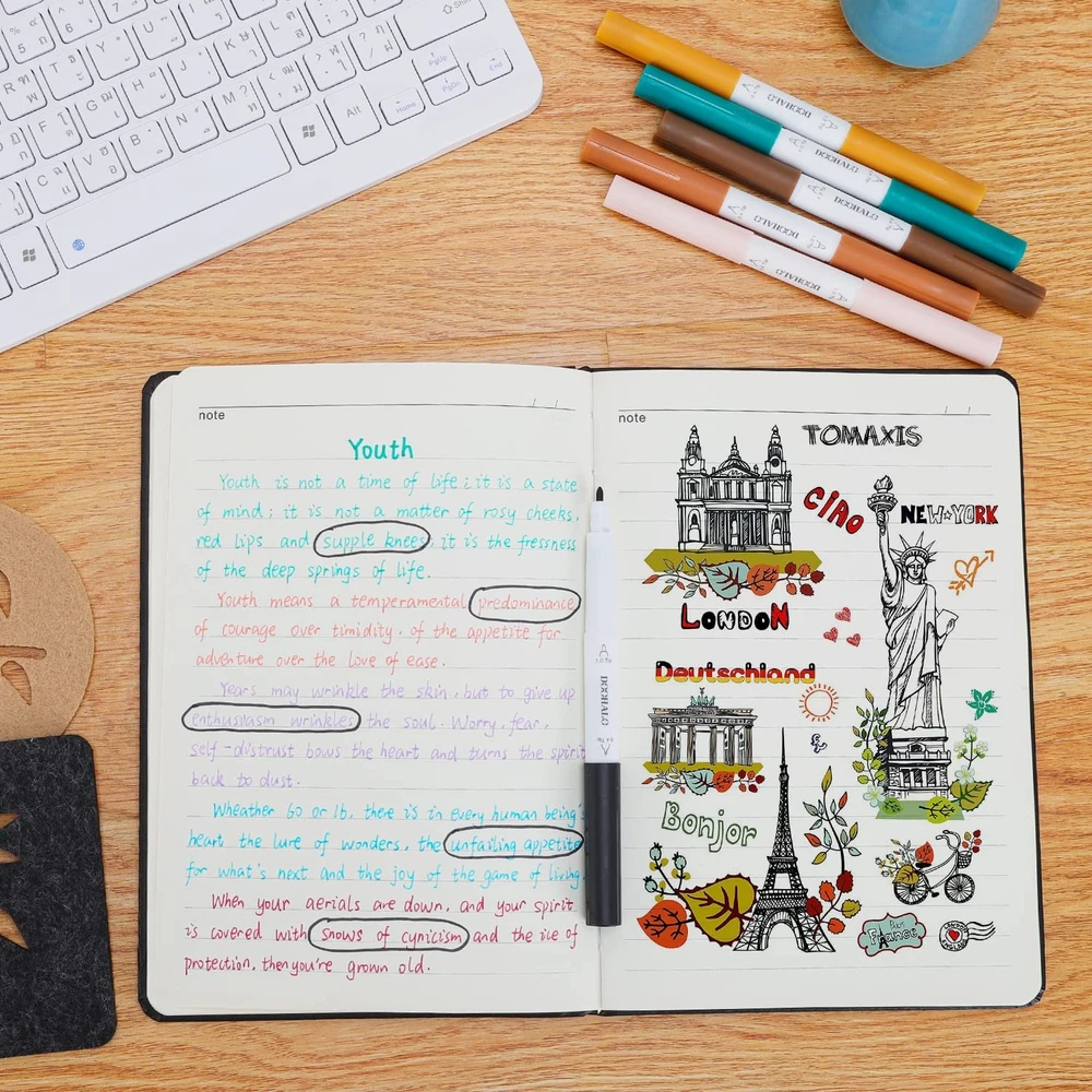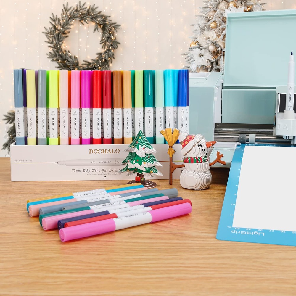 PEN FOR CRICUT : Only work with Cricut Maker 3/Maker/Explore 3/Air 2,dual tip marker pens perfectly meet your demand in the drawing, coloring and writing. COLORED PEN PACK: Total 34 unique selection and 2 EXTRA black color in the pack, Primary colors Variety of colors to use with Cricut Machine which is a basic Accessories for Cricut art creative project.Pen with Water based non-toxic ink could be Long lasting and quickly dry, bring your project with brilliant and vibrant color looks. EASY TO USE: Pen set suitable for adult and children in card making, drawing , coloring, sketching, doodling, Bullet journal, calligraphy hand lettering. Ideal for homemade cards decorations, invitation and another drawing coloring craft projects. It is great for DIY crafts to create unique gifts for friends or families. DUAL TIP COLPRING TPENS: Dual tip Coloring Pens comes with 0.4 fine point tip and 1.0 brush tip, The Fine point tips can be conveniently accurate line control, and the brush tip are perfect for the coloring, both tips are superior color blending and flexibility of smooth of smooth pen stroke, easy to control in drawing with thick or think line. STORE AND PACKING: Well Package case could have a good organized storage plastic case for your pens, which make it portable and well management for your school, travel and daily using.