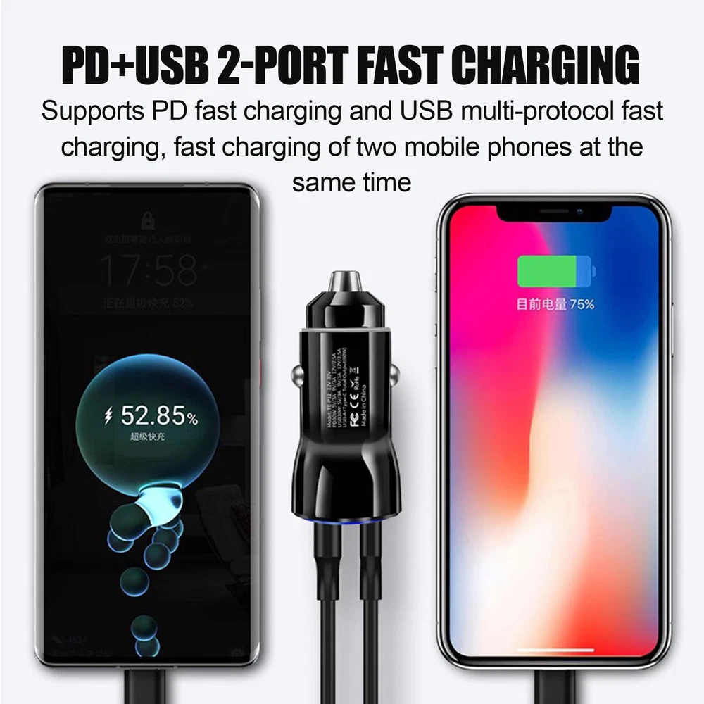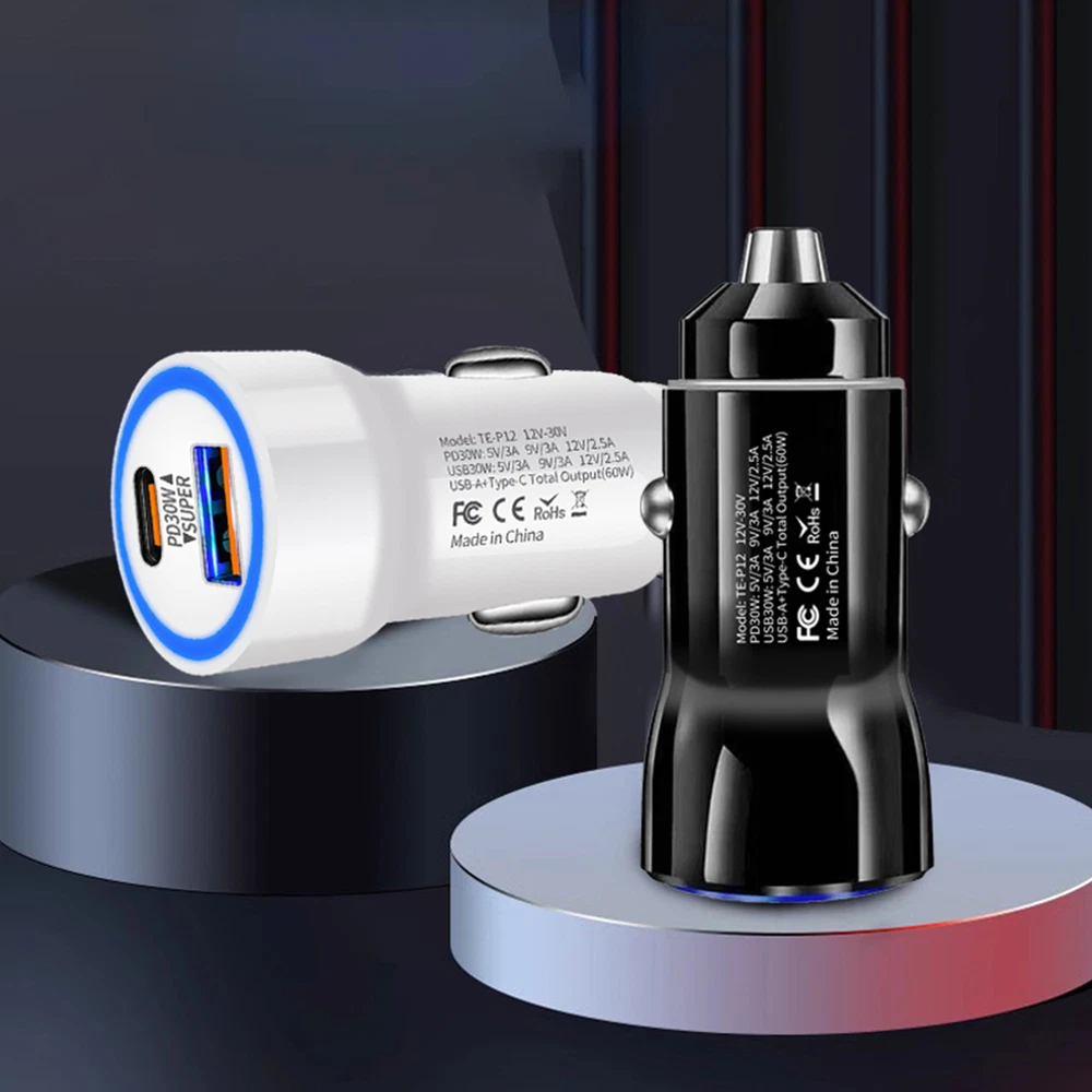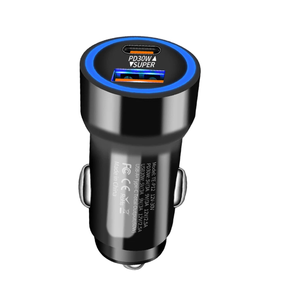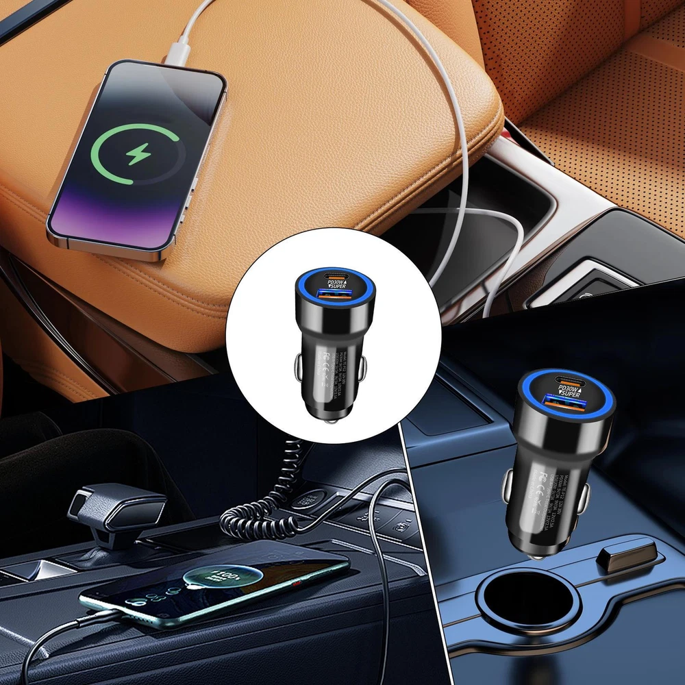 Bullet Points: Fast Charging Efficiency: With PD30W fast charging technology, this car charger delivers fast charging for your gadgets, ensuring maximum powering travel in no time Multi-port Charging: Featuring a USB and Type-C interface, this car fast charging block delivers quick and dependable efficiency to two devices at once. Keep your gadgets charged up Practical and Helpful: With support for 60W super fast charging, our car charger is the perfect charging adapter for your long-distance drives. Get faster charging speeds for all compatible devices Use with Ease: Transform your time travel with this fast charging car charger. Its innovative plug-and-charge design delivers instant charging without any additional accessories required Wide Range of Uses: Versatile car charger allowing for effortless connection to various electronic devices such as smartphones, game controllers, tablets, and cameras. Perfect for recording your driving or keeping your devices charged on long road trips This car fast charging adapter allows you to quickly charge up to two electronic devices while driving, making it perfect for long trips. With no additional accessories needed, you can easily achieve an instant charging experience. Specifications: Product name: Fast car charger Product size: about 5.6x2.6cm/2.21x1.02 inches Product weight: about 17g Rating input: DC12-30V Rating output: PD30W: 5V/3A 9V/3A 12V/2.5A USB30W: 5V/3A 9V/3A 12V/2.5A USB-A+Type-C: Total Output (60w) Packing List: 1 * Fast car charger Notes: 1. Due to the lighting effects and photographing angles, there is a color difference in the product, please understand. 2. Due to manual measurement, there is a tolerance in the product size.