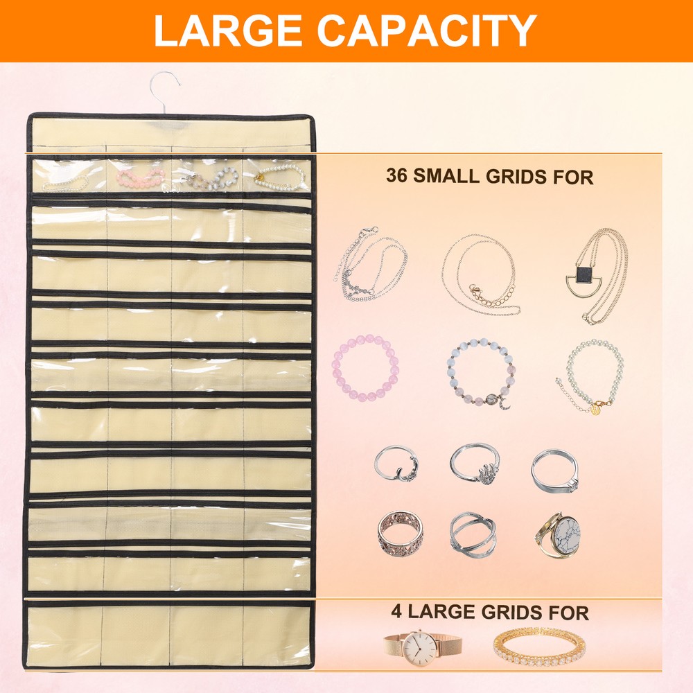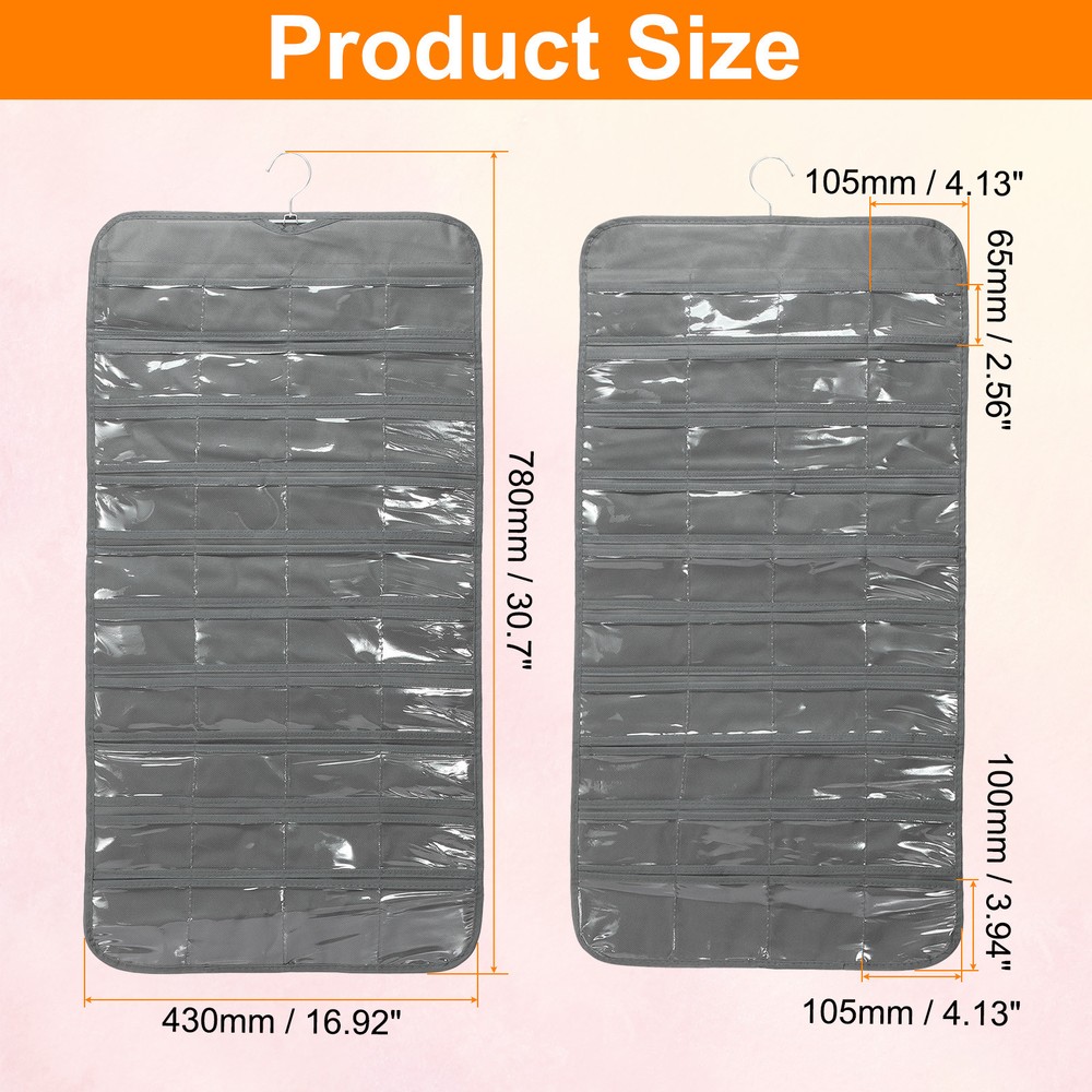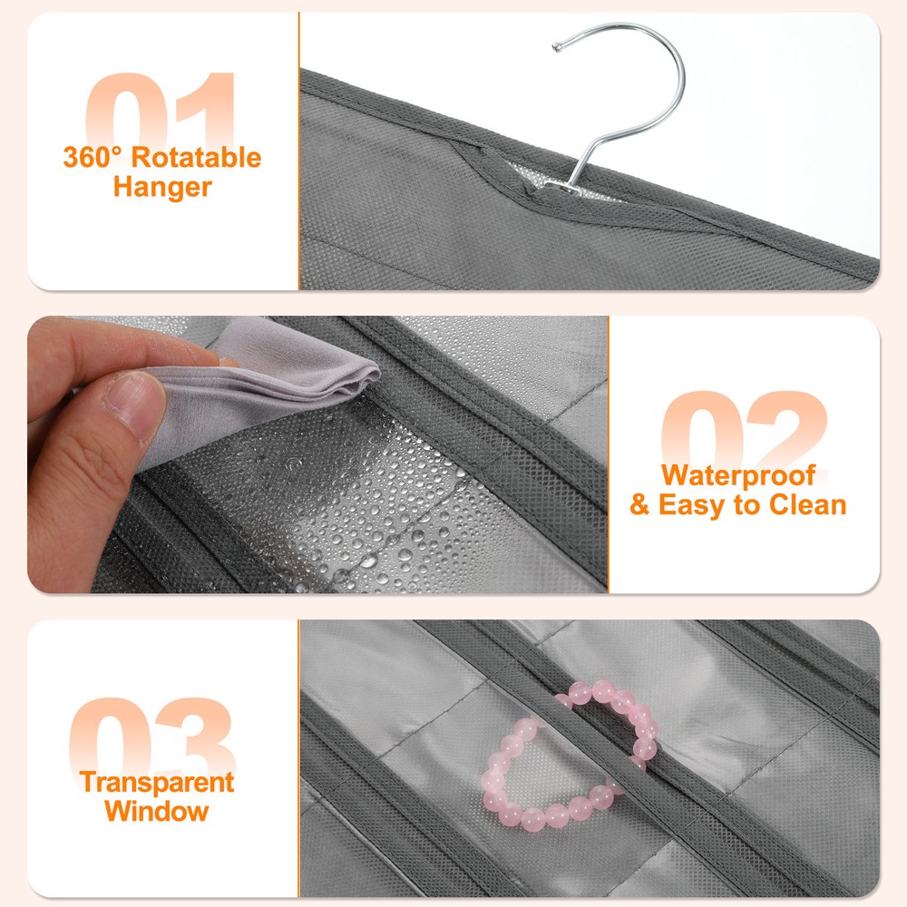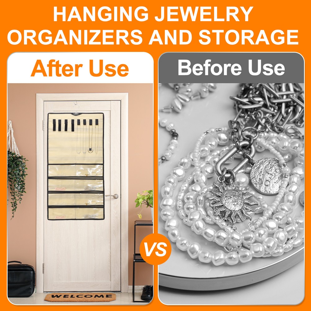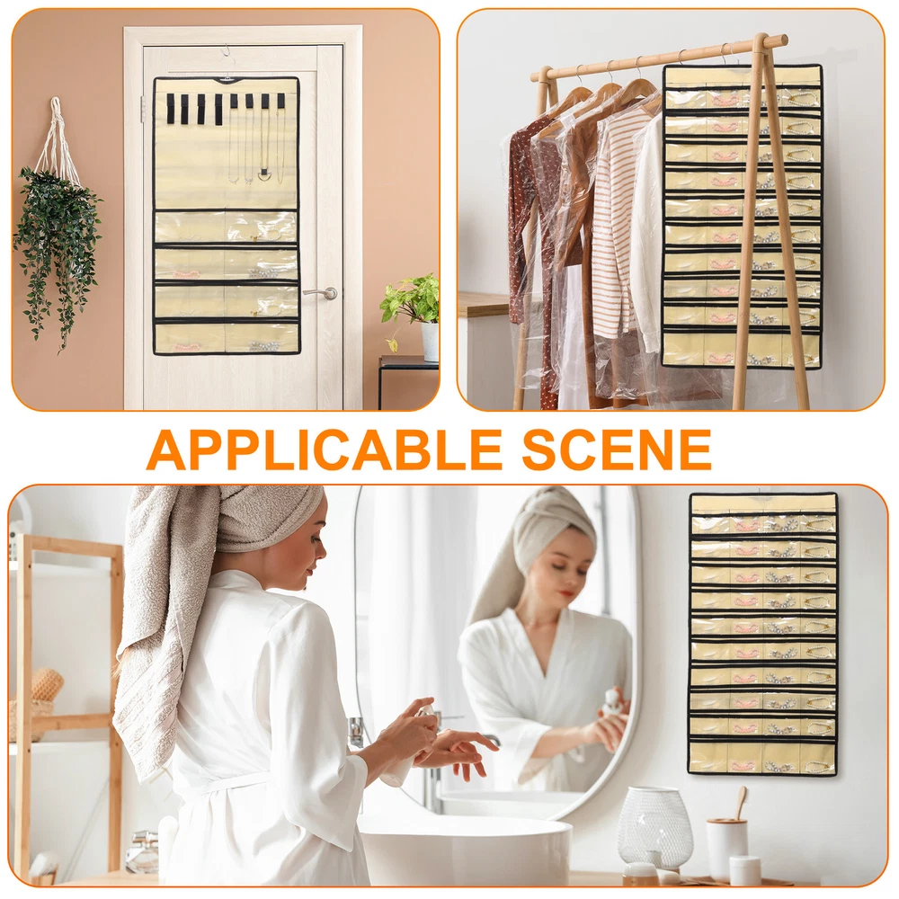 Document Hanging Jewelry Organizers and Storage:The overall size of the jewelry storage bag is 43 x 78 cm / 16.92 x 30.7 inches, with a total of 80 transparent pockets. It is a double-sided design, with 40 small pockets on one side for bracelets, earrings and rings.Easy to Use: Save space, can be hung on the wall, wardrobe, behind the door. Store all jewelry in the same place, so you can pick it up at will.It takes up as little space as a shirt hanging in the closet, saving a lot of space than a jewelry box or jewelry stand.It can be folded or rolled up, making it convenient to carry jewelry on business trips or vacation trips.Protect Jewelry: The compartment design allows for separate storage to reduce dust ingress, protects your jewelry from entanglement, effectively avoids scratches, and prevents oxidation and rust from occurring.In addition, it can also display your beautiful jewelry.Hang Anywhere: With a double-sided design, the jewelry hanger can rotate 360 degrees to any direction you need.Made of durable polyester, PVC materials and sturdy metal hooks, it is sturdy and durable, not easy to break or fade, and can be used for a long time.Multifunctional Jewelry Organizer: It can store and display a large amount of jewelry, and the transparent pocket allows you to easily find jewelry.The wardrobe jewelry hanging storage box has a variety of uses, not only for storing jewelry, but also for nail polish, cosmetics, cards, etc. Dual-sided Hanging Jewelry Organizer with 80 Pockets Grey Hanging Jewelry Organizers and Storage: The overall size of the jewelry storage bag is 43 x 78 cm / 16.92 x 30.7 inches, with a total of 80 transparent pockets. It is a double-sided design, with 40 small pockets on one side for bracelets, earrings and rings. Easy to Use: Save space, can be hung on the wall, wardrobe, behind the door. Store all jewelry in the same place, so you can pick it up at will. It takes up as little space as a shirt hanging in the closet, saving a lot of space than a jewelry box or jewelry stand. It can be folded or rolled up, making it convenient to carry jewelry on business trips or vacation trips. Protect Jewelry: The compartment design allows for separate storage to reduce dust ingress, protects your jewelry from entanglement, effectively avoids scratches, and prevents oxidation and rust from occurring. In addition, it can also display your beautiful jewelry. Hang Anywhere: With a double-sided design, the jewelry hanger can rotate 360 degrees to any direction you need. Made of durable polyester, PVC materials and sturdy metal hooks, it is sturdy and durable, not easy to break or fade, and can be used for a long time. Multifunctional Jewelry Organizer: It can store and display a large amount of jewelry, and the transparent pocket allows you to easily find jewelry. The wardrobe jewelry hanging storage box has a variety of uses, not only for storing jewelry, but also for nail polish, cosmetics, cards, etc. Hot Item Payment 1.We accept eBay payment . 2.Payment must be received within 7 business days of auction closing. Shipping 1.We ship to your eBay or Paypal address. Please make sure your eBay and Paypal address is correct before you pay. 2.Items will be shipped within 1-3 business day when we received payment. 3.Delivery time depends on destination and other factors. Description Policy Dual-sided Hanging Jewelry Organizer with 80 Pockets Grey Hanging Jewelry Organizers and Storage: The overall size of the jewelry storage bag is 43 x 78 cm / 16.92 x 30.7 inches, with a total of 80 transparent pockets. It is a double-sided design, with 40 small pockets on one side for bracelets, earrings and rings. Easy to Use: Save space, can be hung on the wall, wardrobe, behind the door. Store all jewelry in the same place, so you can pick it up at will. It takes up as little space as a shirt hanging in the closet, saving a lot of space than a jewelry box or jewelry stand. It can be folded or rolled up, making it convenient to carry jewelry on business trips or vacation trips. Protect Jewelry: The compartment design allows for separate storage to reduce dust ingress, protects your jewelry from entanglement, effectively avoids scratches, and prevents oxidation and rust from occurring. In addition, it can also display your beautiful jewelry. Hang Anywhere: With a double-sided design, the jewelry hanger can rotate 360 degrees to any direction you need. Made of durable polyester, PVC materials and sturdy metal hooks, it is sturdy and durable, not easy to break or fade, and can be used for a long time. Multifunctional Jewelry Organizer: It can store and display a large amount of jewelry, and the transparent pocket allows you to easily find jewelry. The wardrobe jewelry hanging storage box has a variety of uses, not only for storing jewelry, but also for nail polish, cosmetics, cards, etc. Hot Item Payment 1.We accept eBay payment . 2.Payment must be received within 7 business days of auction closing. Shipping 1.We ship to your eBay or Paypal address. Please make sure your eBay and Paypal address is correct before you pay. 2.Items will be shipped within 1-3 business day when we received payment. 3.Delivery time depends on destination and other factors.