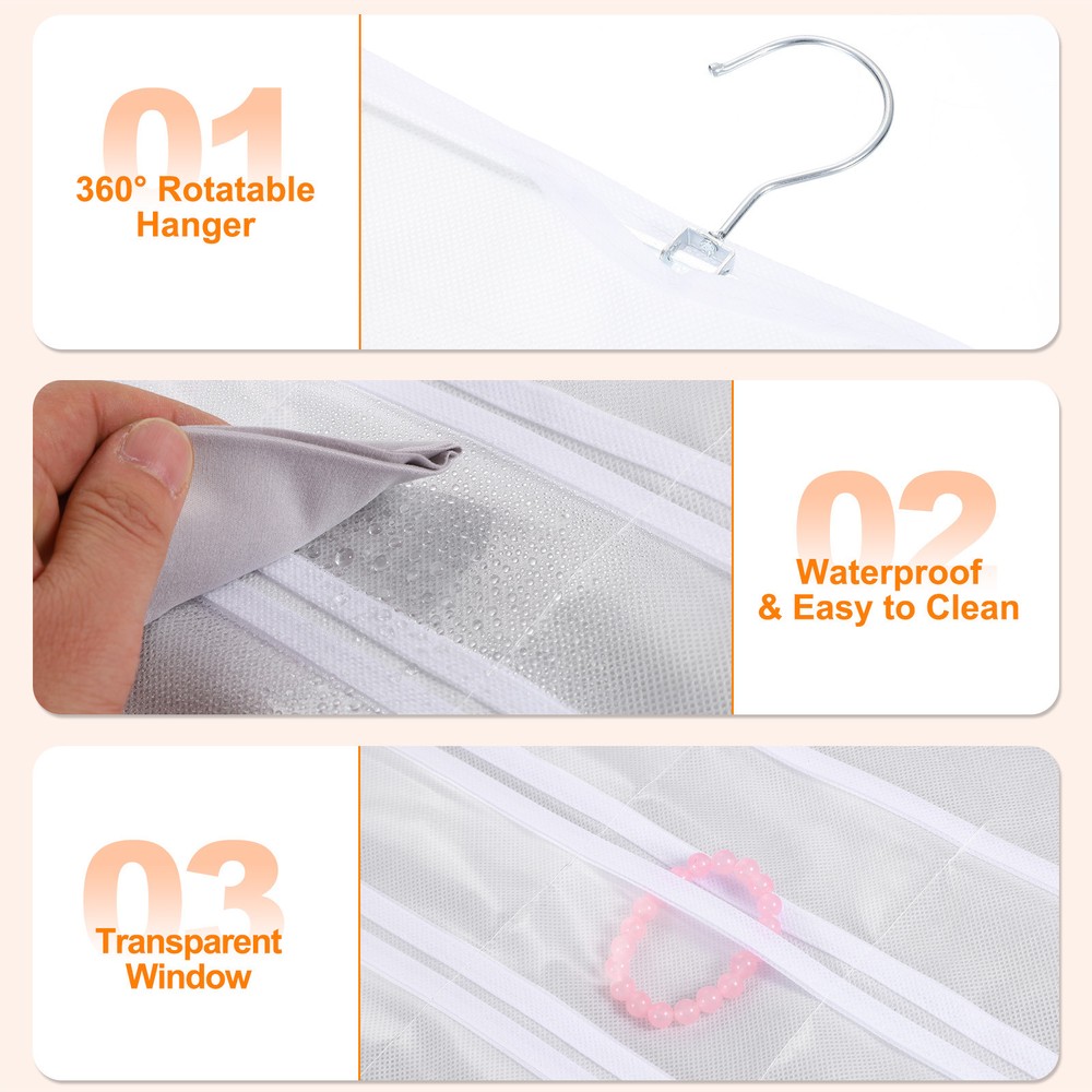 Dual-Sided White Jewelry Organizer with 80 Pockets for Necklaces & More