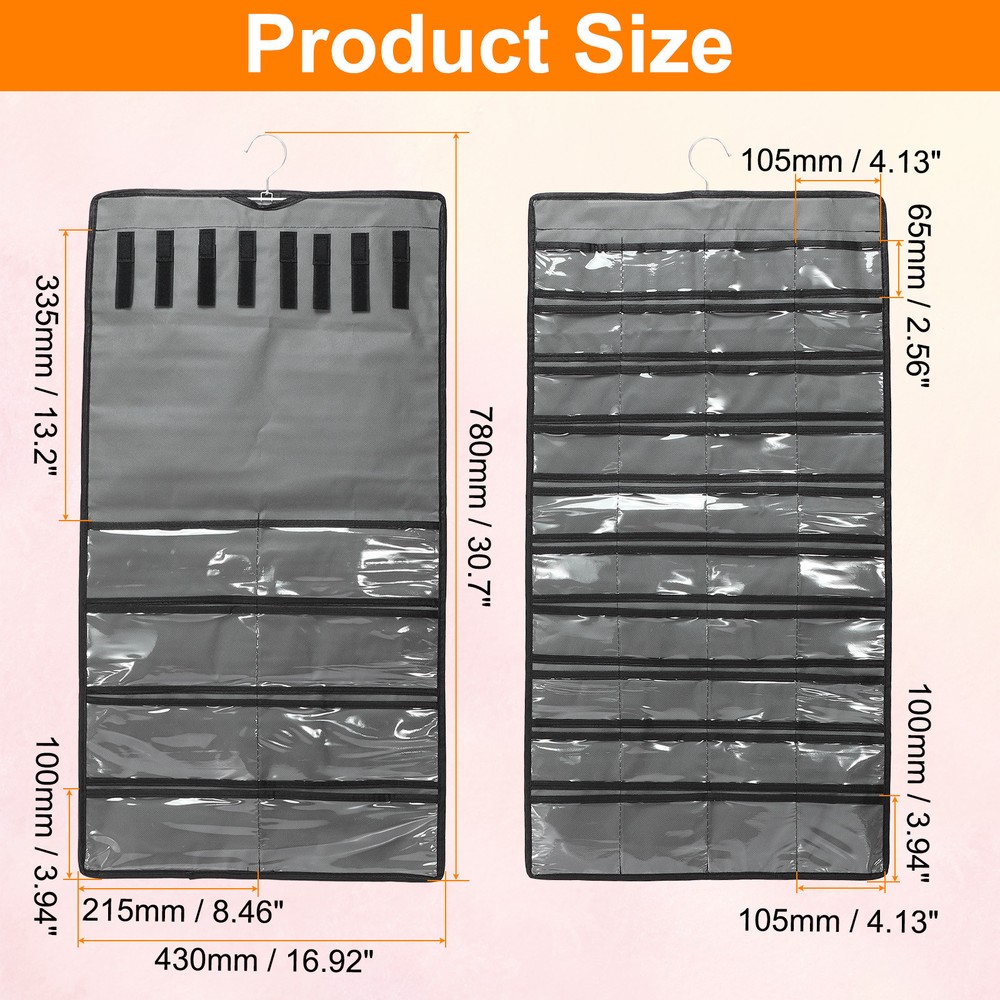 $ 8.9Dual-Sided Hanging Jewelry Organizer with 80 Pockets in Grey