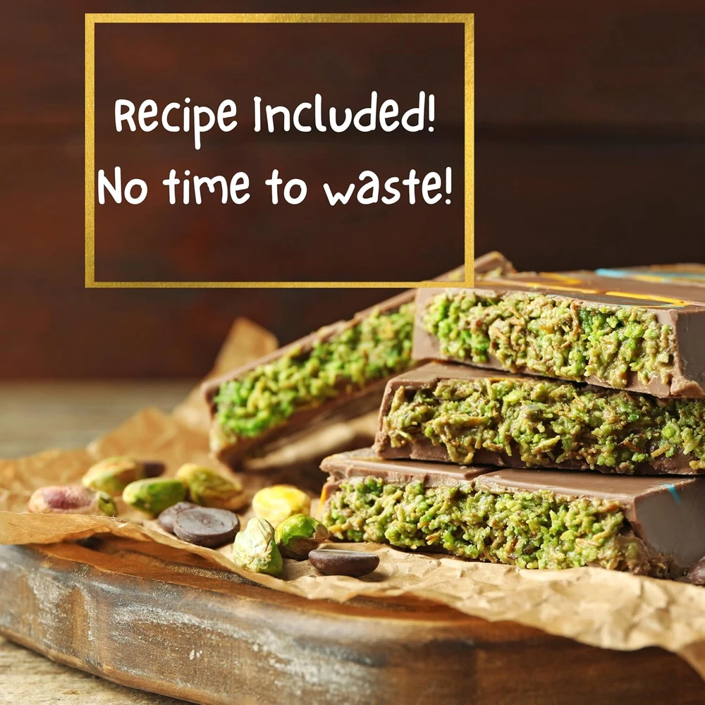 💰 Great Value for the Money: Enjoy a luxury Dubai Kunafeh chocolate-making experience with this kit that makes one generous 8 oz bar—just add your own chocolate! 🌰 Fresh & High-Quality Ingredients: Every kit is packed with fresh, premium ingredients to ensure amazing flavor in every bite. 🍫 Use Your Favorite Chocolate: Milk, dark, white, or flavored — customize it your way with any chocolate you love! 📖 Easy-to-Follow Recipe Included: No baking skills? No problem! Our clear, step-by-step instructions make it simple and fun for everyone. 🎁 Awesome Gift Idea: Makes a unique and thoughtful gift for chocolate lovers, foodies, or anyone who loves to try something new. 💤 Perfect for Any Occasion: Great for parties, sleepovers, family nights, game nights, or just a fun weekend activity. 🧑🍳 Fun for All Ages: Whether you're making it solo or with friends or kids, a Dubai Kunafeh Chocolate Bar Kit is an easy and enjoyable treat everyone will love. Create a delicious 8 oz Dubai Knafeh pistachio chocolate bar at home! This fun, easy-to-follow dubai chocolate bar kit by Ma Lit Candy comes with fresh ingredients, a simple recipe, a mold, and lets you use any chocolate you love. Perfect for gifting, parties, or a sweet night in — it’s great value and even better taste!