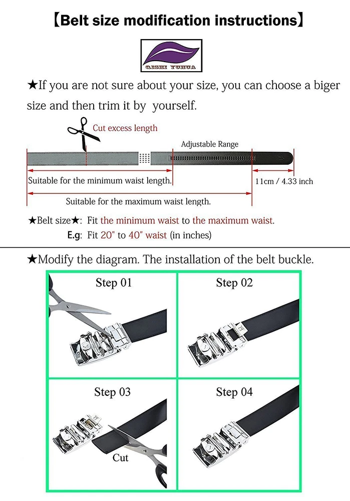 NO EASY SCRATCHED:Automatic Buckle is made of high quality alloy.smooth;comfortable;durable and no easy scratched.Click buckle has 10 Variety styles.EG:GOLD;BLACK;SILVER BATMAN buckle and many more EXACT SIZE:Fashion leather belt length:43"(110 cm) to 51"(130 cm),Designer belt fit waist size:22" to 49",Ratchet belt width:1 3/8"(35 mm).Trim to fit:easy cut the genuine leather belt according to your waistline MULTIPLE OCCASIONS:Dubulle men's belt is suitable for all kinds of occasions, for Dress; Formal;Casual;Golf;Business;Party;Outdoor and Wedding.The black belt is comfortable,cool and matched with big and tall casual;formal;golf pans;trousers and jeans everyday GIFT of LOVE:Dubulle cool belt is a perfect family gift for husband dad son brother and friends.It is full of your true love Dubulle’s Guarantee:24-hour online service,if you have any questions,please contact us and you will get response within 6 hours