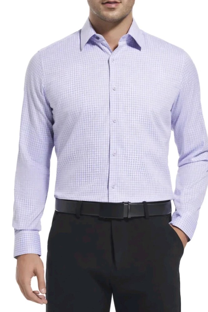 Duchamp London Men's Slim Fit Cotton Stretch Shirt Size: 17 X-Large Color: Purple Content: 97% Cotton / 3% Elastane