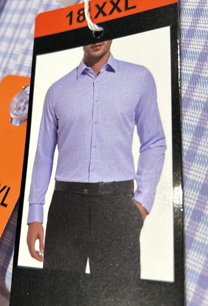 Duchamp London Men's Slim Fit Cotton Stretch Shirt Size: 18 XX-Large Color: Purple Content: 97% Cotton / 3% Elastane