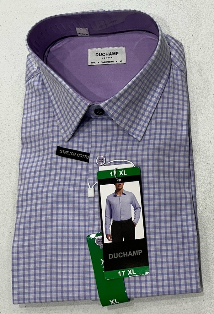 Duchamp London Men's Tailored Fit Cotton Stretch Shirt Size: 17 X-Large Color: Purple Content: 97% Cotton / 3% Elastane