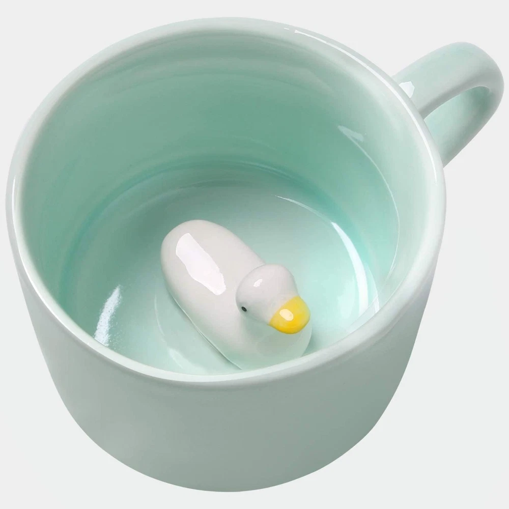 Duck Ceramic Cup Hidden 3D Animal inside Mug,8 Oz, Lovely Mug for Christmas, Bir