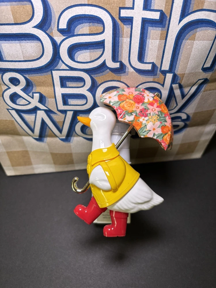 Duck Silly Goose Umbrella Wallflower Plug In Bath & Body Works BRAND NEW SHIPS OUT WITHIN 24HRS!! What it does: wafts your favorite, always-on fragrance into any room, just the way you like it. Why you'll love it: Totally adjustable with 3 intensity levels to fit every room Provides about more than 1 month of fragrance on low, 1 month on medium (default setting) and less than 1 month on high Perfect for every (and any) room Pairs with your favorite Wallflowers fragrance refills (sold separately)