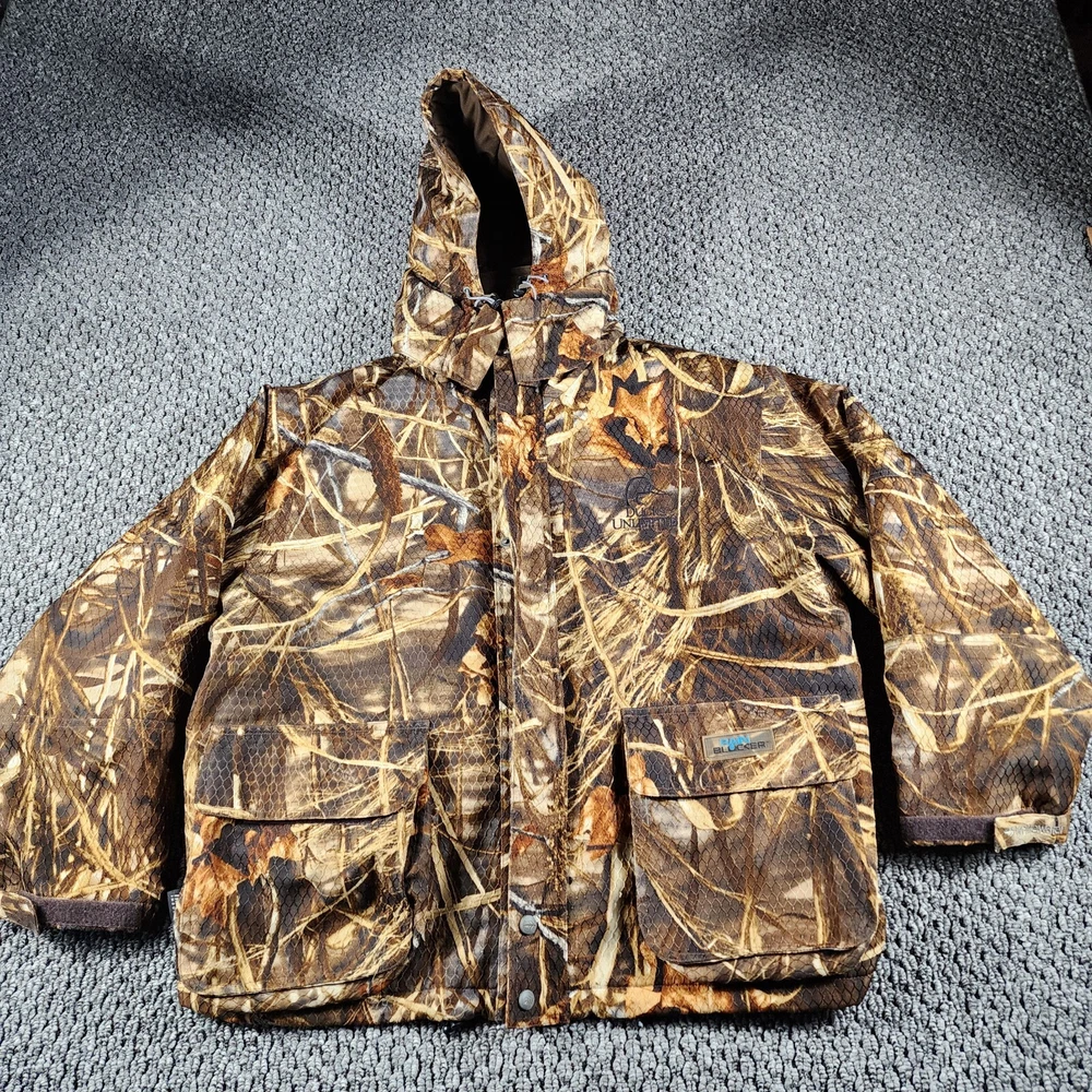 Pattern: Camouflage Gender: Men Material: Polyester Features: Hood, Thermal/Insulated, Waterproof, camoflage Brand: Ducks Unlimited Size Type: Regular Country/Region of Manufacture: China Color: Multi-Color Size: M