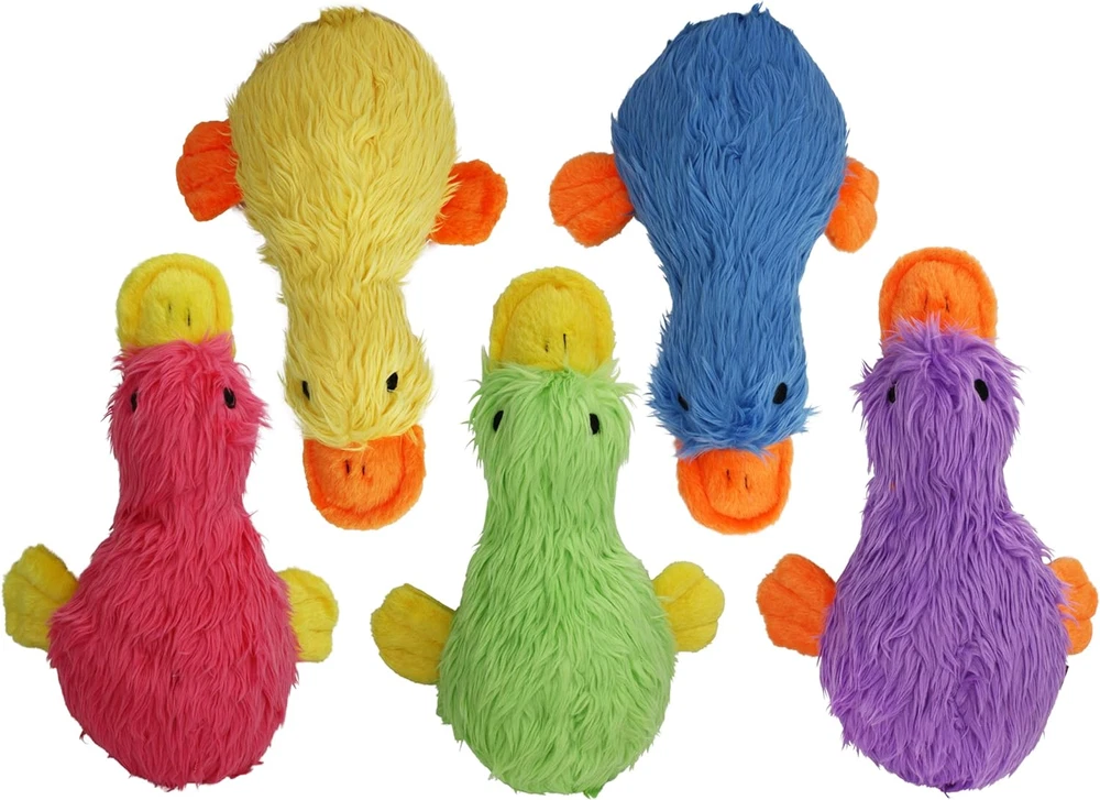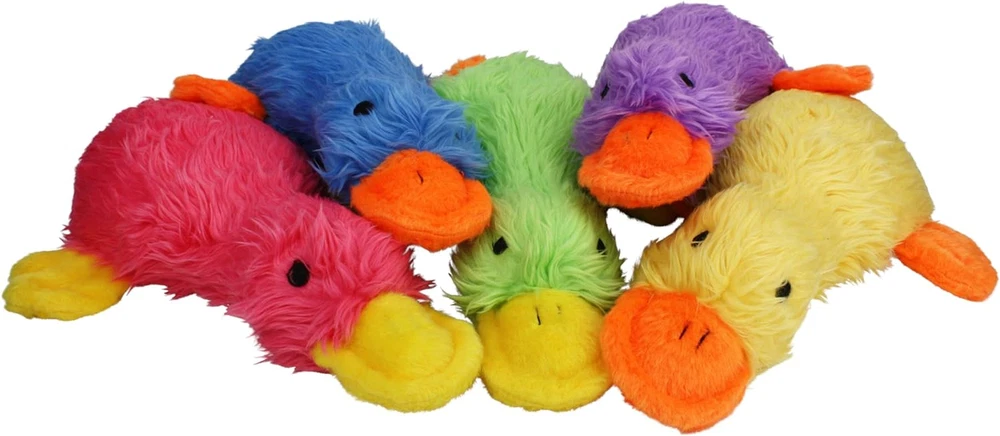 Great for fetch and play Larger toy, but great for all sized pets Squeaker and plush filled Pets should be supervised while playing with toys and all damaged toys should be discarded Assorted colors. You will receive one item. Included Components: Polyfiber Plush Filling Note: plush toy not designed for aggressive play Multipet duckwoth is a 15-inch plush filled shaggy duck. He is a soft fluffy dog toy that squeaks when played with. Larger size is ideal for large breeds or small breeds who "think" They are big! Assorted colors. Customers will receive one item.