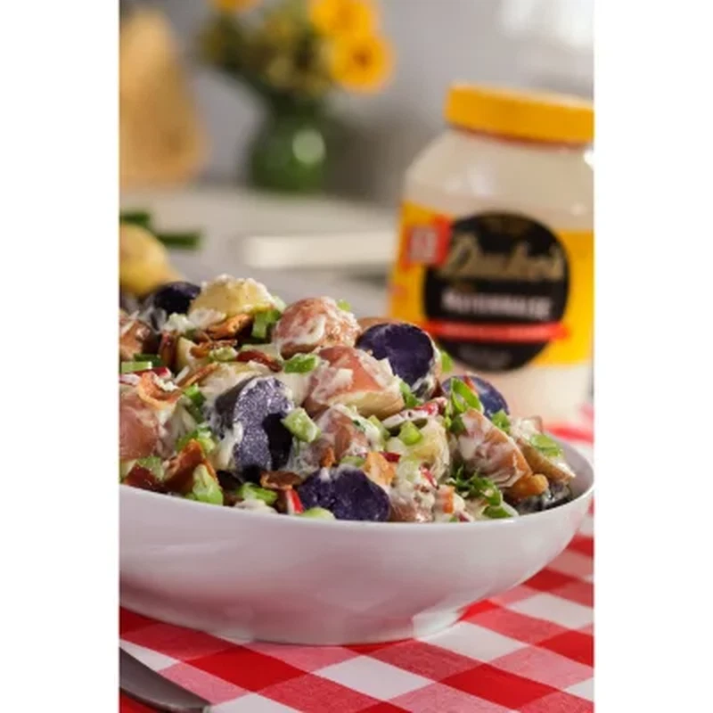 ### Duke's Real Mayonnaise Indulge in the smooth, creamy texture and unique flavor of Duke's Real Mayonnaise, crafted with Eugenia Duke's original recipe since 1917. Celebrated by chefs and home cooks alike, Duke's offers a rich and tangy experience that elevates any dish. #### Key Features: - **Creamy Texture**: Made with egg yolks (not egg whites) for a luxuriously smooth consistency that enhances every bite. - **Distinctive Tang**: Cider vinegar provides a signature tangy flavor that sets Duke's apart from other mayonnaises. - **No Sugar Added**: Enjoy the pure taste of mayonnaise without any added sugar, making it a favorite for many health-conscious consumers. - **Homemade Taste**: Fans claim Duke's tastes just like homemade mayonnaise—if not better! - **Rich History**: Originating from sandwiches sold to soldiers at Camp Sevier in South Carolina, Duke's has been a beloved staple for over a century. - **Versatile Use**: Perfect for sandwiches, salads, dips, and even as a key ingredient in baking, adding depth to your favorite recipes. - **Diet-Friendly**: Gluten-free, certified kosher, rich in Omega 3-ALA, and compatible with keto and low-carb diets. #### Why Choose Duke's? - **Trusted Legacy**: With over 100 years of tradition, Duke's Mayonnaise is the secret to great food that has stood the test of time. - **Loyal Following**: Join the ranks of loyal fans who have spread the word about Duke's across the United States. Try Duke's Real Mayonnaise today and discover why it has been the secret ingredient to delicious meals for generations!