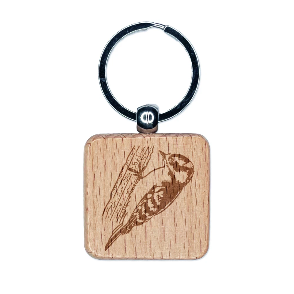 Dulce Suave Suave Pájaro Carpintero Grabado Madera Cuadrado Llavero Etiqueta Dije