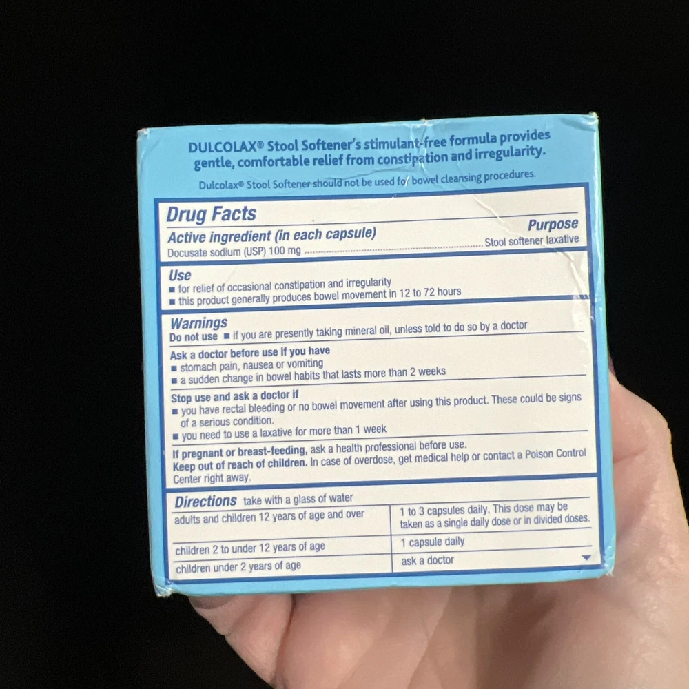 Dulcolax Stool Softener No Sugar Added. 100 Liquid Gels. Exp. 04/2027