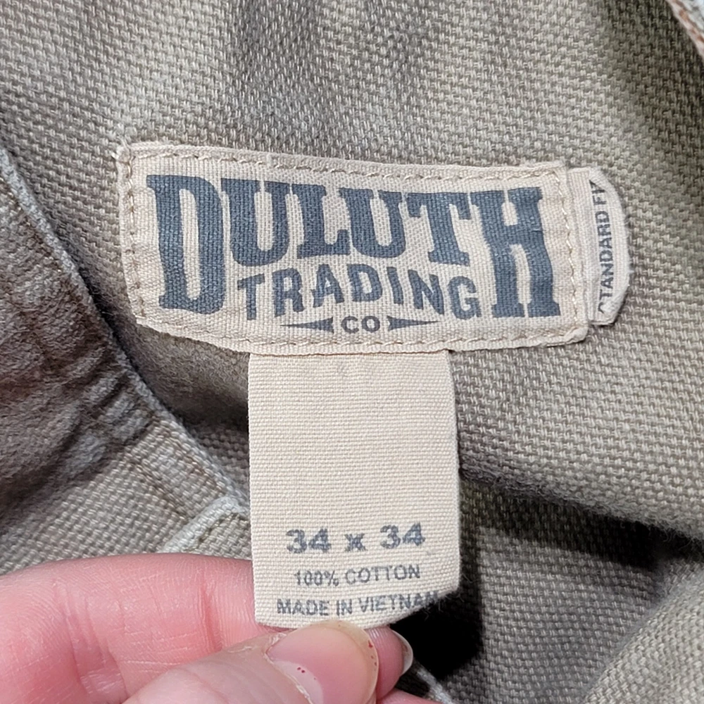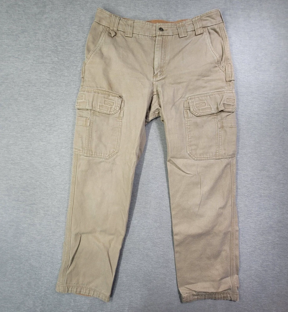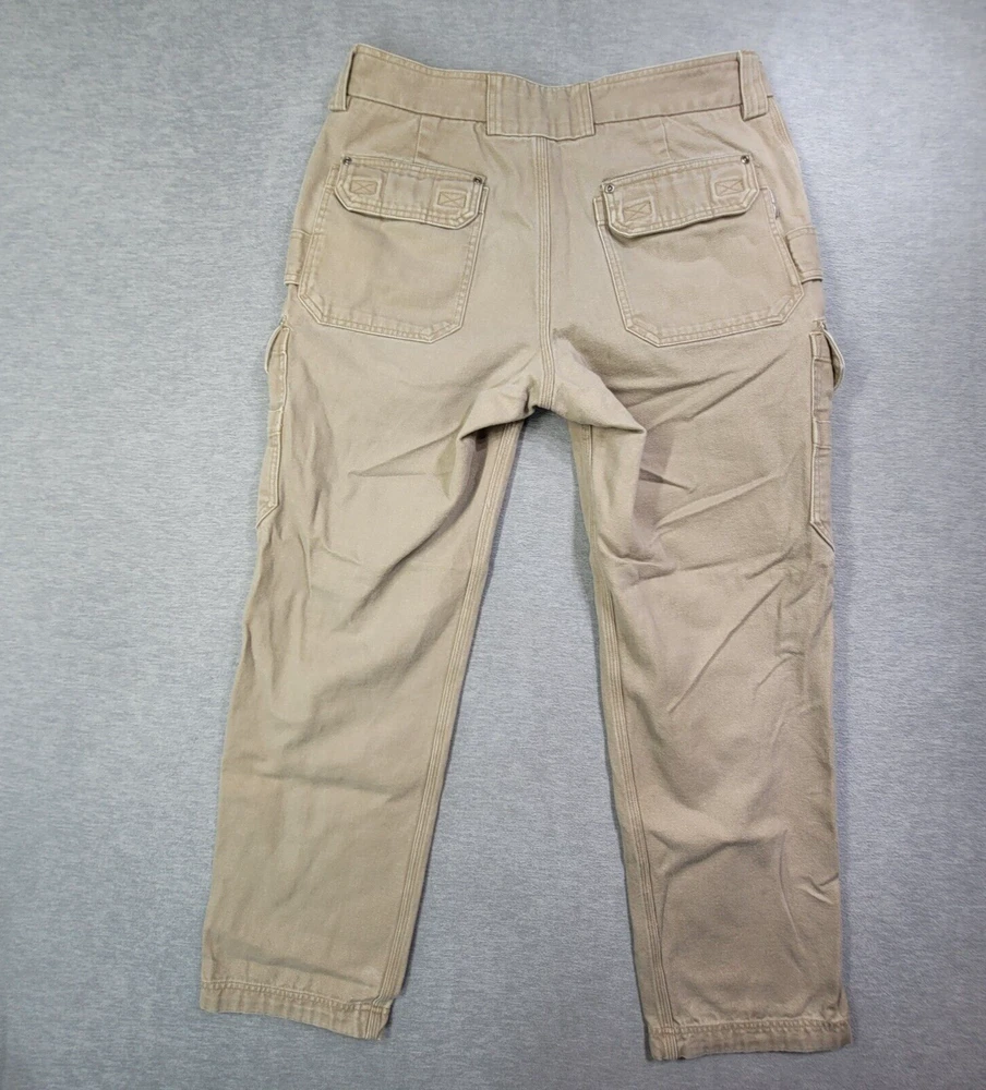Duluth Trading Cargo Pants Mens 34x34 Beige Canvas Traditonal Fit Utility Work