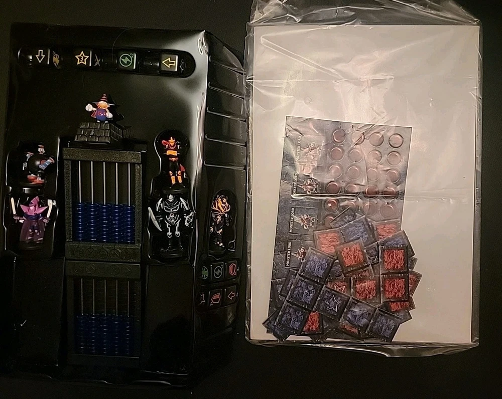 Selling as is for parts or repair. Item is pre-owned and missing the cards. All other items seem to be present. See pictures for details The Dungeondice Monsters Starter Set Figures Game from Mattel is a vintage collectible card game set based on the Yu-Gi-Oh! TCG. Made of plastic and featuring multicolor monsters, this set includes figures that can be used to collect and trade with other players. With an age level of 8 years and up, this starter set provides an exciting addition to any collector's library of CCG items.