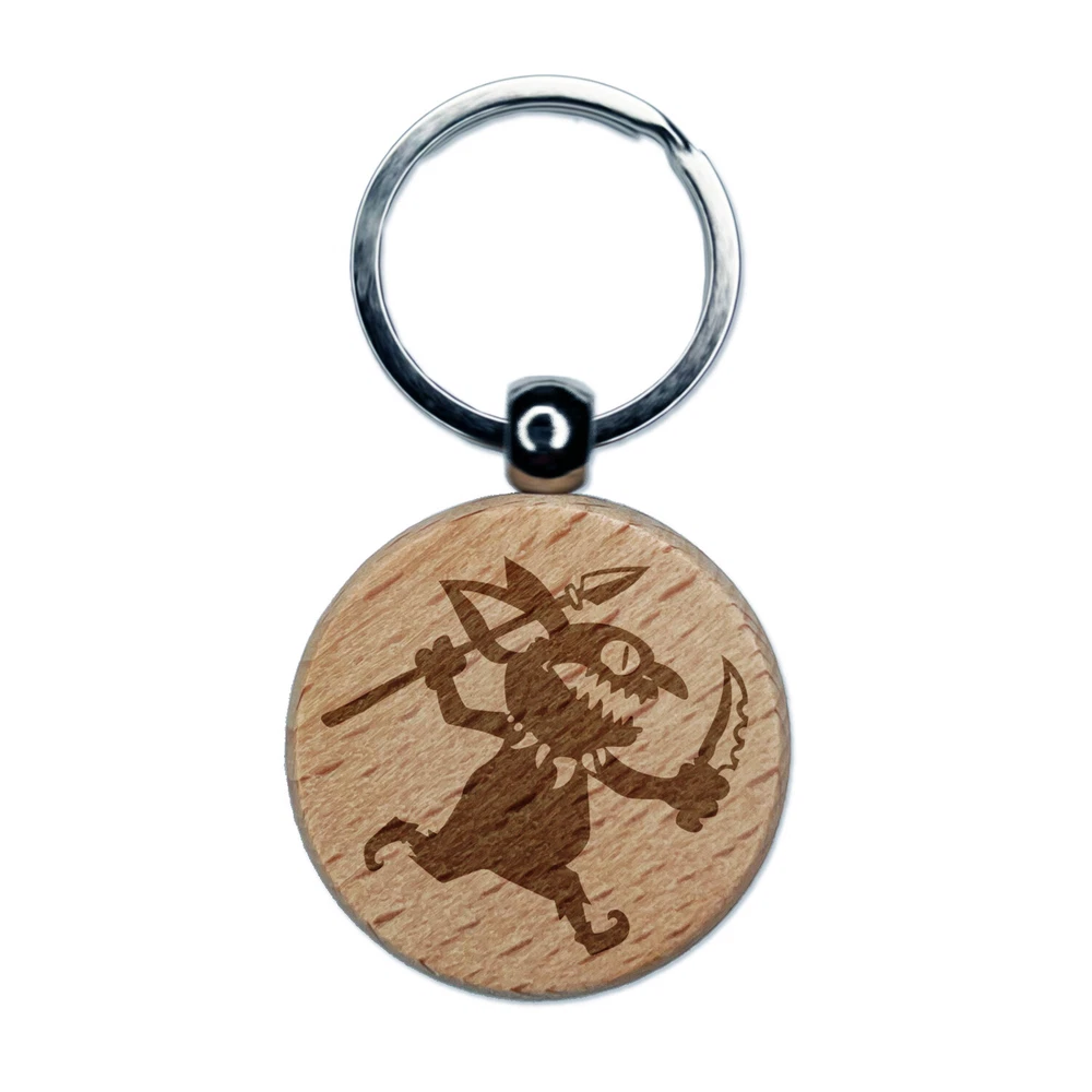 Dungeon Goblin Spear Dagger Engraved Wood Round Keychain Tag Charm