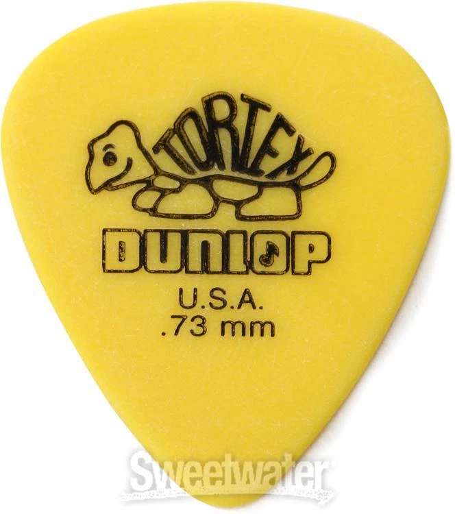 Setting the Standard Since 1981 Originally designed to replicate the feel of a tortoiseshell pick, Dunlop’s Tortex line has since outgrown its iconic tortoise mascot, revolutionizing the world of guitar picks for over 40 years. Before Tortex picks came along, guitar players could only choose from a limited selection of plectrums that often came in only three ambiguous sizes: light, medium, and heavy. Jim Dunlop sought to provide a solution in arming players with a complete range of thickness standardized to the 100th of a millimeter, and easily recognizable by Dunlop’s signature color-coded system. Excellent durability, perfect grip, and snappy tone have made Tortex the industry-standard pick for guitar players around the world. Whether you’re a pro or just beginning your musical journey, you can be sure that there’s a Tortex pick for you!Signature Tortex composition and durability Jim Dunlop strove to provide guitar players with the best pick possible, Sweetwater is an Authorized Dunlop Dealer Genuine New Item Sweetwater's 2-year warranty Dunlop Tortex Standard Guitar Picks - .73mm Yellow (72-pack) Standard Shape Tortex Guitar Picks, .73mm Gauge - Yellow, 72-pack Setting the Standard Since 1981 Originally designed to replicate the feel of a tortoiseshell pick, Dunlop’s Tortex line has since outgrown its iconic tortoise mascot, revolutionizing the world of guitar picks for over 40 years. Before Tortex picks came along, guitar players could only choose from a limited selection of plectrums that often came in only three ambiguous sizes: light, medium, and heavy. Jim Dunlop sought to provide a solution in arming players with a complete range of thickness standardized to the 100th of a millimeter, and easily recognizable by Dunlop’s signature color-coded system. Excellent durability, perfect grip, and snappy tone have made Tortex the industry-standard pick for guitar players around the world. Whether you’re a pro or just beginning your musical journey, you can be sure that there’s a Tortex pick for you! Signature Tortex composition and durability Jim Dunlop strove to provide guitar players with the best pick possible, constantly refining his materials and processes until he arrived at Tortex’s signature composition. Tortex picks are designed with a grip-enhancing surface that naturally feels “just right” — there's enough texture to firmly stay in your fingers without ever feeling sticky. Constructed from a highly durable plastic called Delrin, Tortex is resistant to the constant wear and bending that guitar picks are subjected to; in other words, they offer a long shelf life even with heavy playing. And of course, Tortex picks are world renowned for delivering a clear and articulate sound that’s ideal for electric, acoustic, and bass guitar playing across the entire spectrum of musical genres. Dunlop standard pick shape: the standard for versatility A jack of all trades, the Dunlop standard is the most common pick shape. There are a wealth of specialized picks that excel in their own way, but Sweetwater guitarists find that the sheer versatility of the standard is unmatched. It's the standard for reason! Dunlop Standard Tortex Guitar Picks Features: Dunlop's standard pick shape has unmatched versatility Sharp point for maximum speed and accuracy when picking Tortex material is highly durable and resistant to everyday play wear Bright and articulate tone that works well for electric, acoustic, and bass guitar across a wide variety of genres Specification Detail Shape Standard Gauge .73mm Material Tortex Quantity 72 Color Yellow RETURN INFORMATION We want you to be completely happy with your purchase from Sweetwater. If you are not satisfied with your product, you may return it for a refund of the purchase price within 30 days. If your purchase was eligible for Free Shipping, the shipping cost will be deducted from your credit or refund. Returns must be in the complete and original packaging with all accessories and complete documentation (Owner's Manual, warranty card, quick start guides, etc.), show no signs of wear or use, and include a Return Authorization number or be subject to a restocking fee.