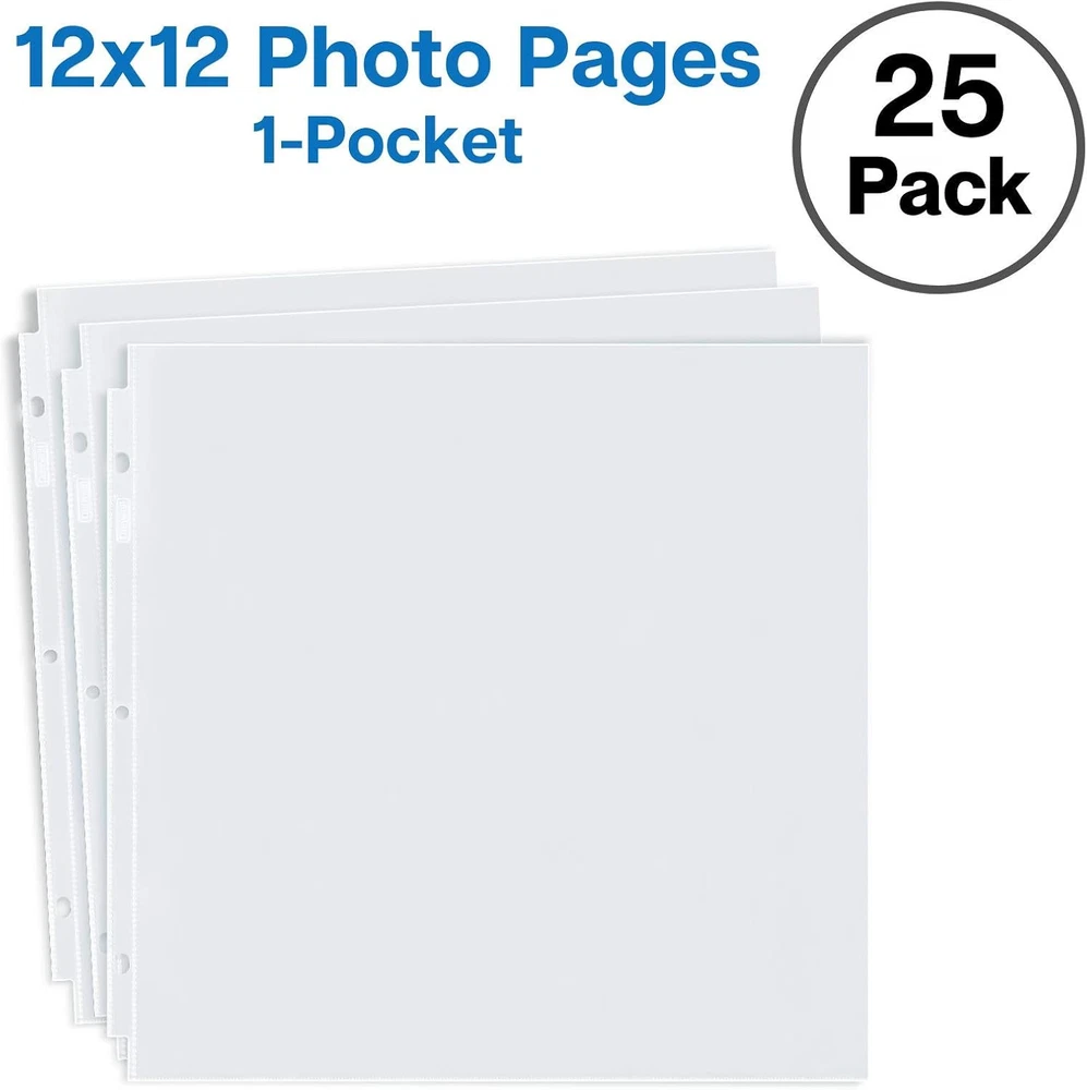 Dunwell Scrapbook Refill Pages 12x12 - (25 Pack) Super 12x12", Crystal Clear Product Details Brand: Dunwell Occasion: Engagement, Graduation, Father's Day, Valentine's Day Color: Crystal Clear Material: polypropylene Theme: Love Specific Uses For Product: Scrapbook Recommended Uses For Product: Scrapbook, Photo Album Target Audience: Family Model Name: PTTR12-SHEET Included Components: Sheet Protector Special Feature: Top-Loading, Fits 3-Ring Scrapbook Binders, Pocket Size: 12-3/8" x 12x3/8", Super Heavyweight Poly, Acid-Free, Crystal Clear Style: 25 Pack Pattern: Solid Shape: Square Product Dimensions: 13.19"L x 0.39"W x 12.6"H Occasion: Engagement, Graduation, Father, Valentine's Day Pages: 25 Pages Size: 12x12" Number of Pieces: 25 UPC: 810069740010 Manufacturer: Dunwell Item Weight: 1.1 pounds Item model number: PTTR12-SHEET Batteries required: No 12x12 Scrapbook Page Protectors: Top loading, clear single pocket clear scrapbook sleeves. Heavy duty poly photo album sheet protectors for scrapbookers. NOTE: Paper insert sheets are not included. Set of 25: Plastic 12x12 page protectors display 50 layouts. Protector sheets perfect for photos, postcards, kids artwork, painted canvas, souvenirs, and other treasured collectibles. Size: Scrapbook refill page pockets are 12-3/8" x 12-3/8". External width: 13-1/8" (includes 1/2" 3-hole strip), Height: 12-5/8". 3-hole strip fits standard 3-ring albums. Check Your 12x12 Album Size: Dunwell sleeves fit 3-Ring and D-Ring scrapbooking binders. Recommended minimum album size: 13.5" wide, 12.7" high. Compatible with: 15x13", 15.40 x 13.70". Durable Super Heavyweight Poly: Archive quality acid-free, 12x12 plastic sleeves are constructed of sturdy non-stick poly, 12x12 photo pages are transparent, with no ink lift-off.