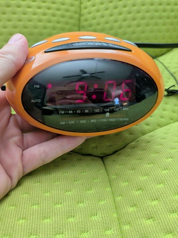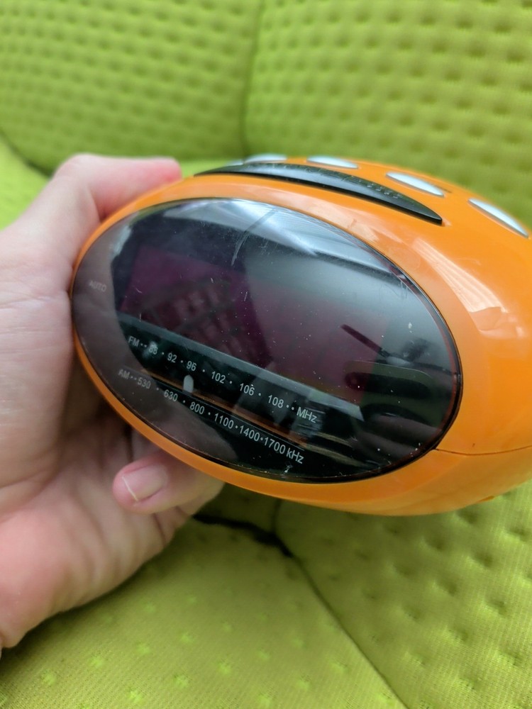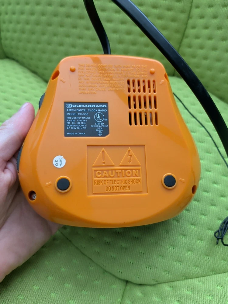 You are looking at a pre-owned Duraband AM/FM Digital Clock Radio Model CR-500 Orange TESTED 2005. This clock was tested and is fully functional. Cosmetically the clock is in good condition, there's a few minor scratches on the clear plastic part in front of the clock which will be shown in the photos - it appears to be just normal wear and tear to me but you he the judge. There's a small surface crack on that plastic as well, it's thin and your fingernail doesn't get caught in it when I was checking the severity of it, it's hardly noticeable.