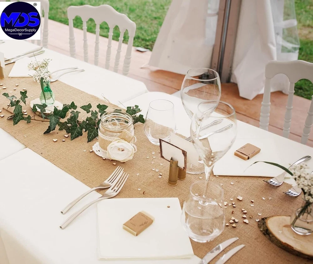Care Instructions: Spot Clean Only Style: Rustic Item Weight: 5.04 Pounds Shape: Rectangular Product Care Instructions: Spot Clean Department: Unisex Features: Seamless, Tightly Hemmed Brand: Unbranded UPC: Does not apply gtin13: Does not apply Pattern: Solid Type: Table Runner Color: Natural Product Dimensions: 108"l X 12"w Size: 12 X 108 Inch | 12 Pcs Occasion: Multipurpose, Wedding, Birthday, Party, Christmas, Thanksgiving, Valentine's Day, Catered Events, Dinner Parties Material: Burlap, Jute
