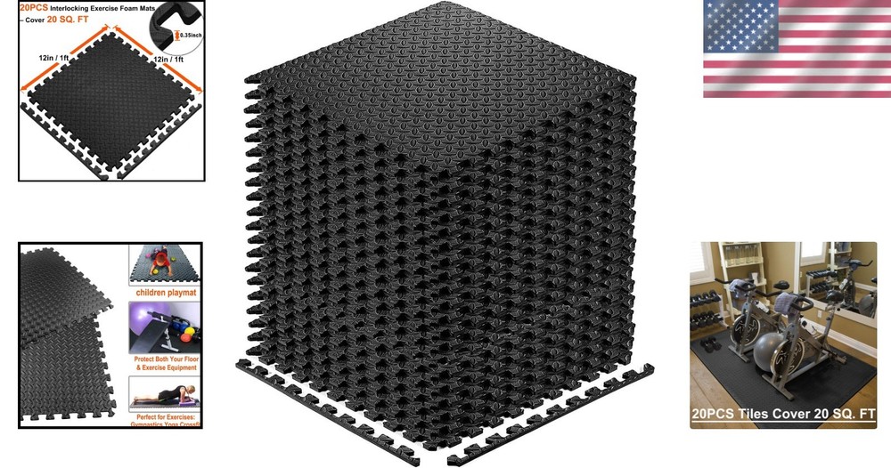 Durable 20-Piece Black Interlocking Foam Mats - Perfect for Fitness & Play
