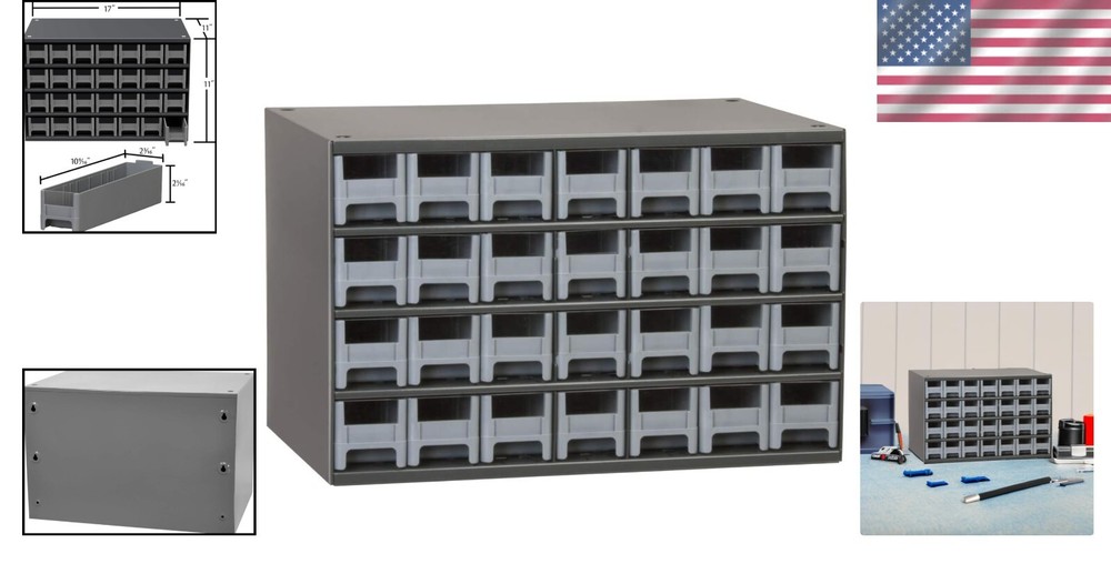 Durable 28-Drawer Garage Storage Cabinet Organizer for Tools and Hardware ‹ › ‹ › ‹ › ‹ › ‹ › ‹ › ‹ › ‹ › ‹ › ‹ › Durable 28-Drawer Garage Storage Cabinet Organizer for Tools and Hardware HIGH QUALITY : Constructed with a robust 24-gauge welded steel frame and topped with a chip-proof, durable powder-coated finish, this stackable tool storage cabinet is designed for longevity. It features keyhole slots on the back for easy wall mounting, ensuring stability whether on a workbench or wall. VERSATILE : This multifunctional metal storage organizer is perfect for any setting. Ideal for personal or professional use, it seamlessly transitions from a garage storage cabinet to a medicine cabinet organizer, dentist tools supply cabinet, craft storage, school supplies drawers, and even a Lego organizer. The possibilities are endless! DIVIDIBLE DRAWERS : Maximize organization with 28 drawers, each capable of being divided into eight compartments using any of the 56 included dividers. The unique dovetailed design provides a secure fit, and the rear stop tab on each drawer prevents spills and lost materials. DIMENSIONS : Each cabinet measures 17-Inches x 11-Inches x 11-Inches and contains 28 high-impact plastic drawers. These drawers are rust, corrosion, and dent-proof, measuring 2-3/16-Inches x 2-1/16-Inches x 10-9/16-Inches, making them spacious enough to accommodate everything from small screws to larger tools. STACK OR HANG : Designed for flexibility, the stackable storage cabinet can be easily wall-mounted thanks to keyhole slots in the back. Alternatively, it fits perfectly on Louvered Panels or ProCart when paired with Model 98400 Mounting Brackets (sold separately). Organize Your Space Transform your clutter into order with this exceptional Garage Storage Cabinet Organizer. Perfectly suited for workshops, garages, workbenches, warehouses, offices, or trucks, it excels at storing screws, nuts, tools, keys, and more. With its sleek charcoal gray finish and strong, high-impact plastic drawers, you can easily identify contents thanks to molded-in label holders and transparent windows. The angled front of each drawer ensures easy access to small parts, while additional dividers (sold separately) enable even greater customization. Embrace a clutter-free environment—order your Durable 28-Drawer Garage Storage Cabinet Organizer today and experience the joy of organized living! Shipping Free & Fast Shipping - We offer free shipping to most of the USA with a normal delivery time of 3-10 businessdays. However, due to various situations, additional delivery time (up to 3 weeks) may be required for some items. Alternative Carriers - We may use alternative carriers (e.g. USPS, FedEx, UPS, etc.) to ensure your package arrives safely and on time. Due to the use of multiple carriers, we are unable to provide a tracking number automatically. Handling Time - Orders are processed and shipped within 1-5 business days of receiving cleared payment. Shipping Restrictions - Shipping to Alaska, Hawaii, Puerto Rico, Guam, and other US territories may incur shipping charges or delivery restrictions. Please contact us before ordering, or your order can be refunded/cancelled. State Restrictions - There may be restrictions based on your state of purchase. For example, certain items may not be shipped to California due to state regulations. Contact for Tracking Updates - If you require tracking updates or have any concerns about the delivery of your order, please feel free to contact us, and we will be happy to assist you. Return Please see our ebay return policy. We do not accept return on most products. This is to avoid customers mis-using ebay returns. All sales are final. Please be sure to check the return policy listed at the top of the listing. In rare cases, we may accept returns, if the buyer pays both ways shipping and 20% restocking fee. If you are un-sure of return policy of a particular item, please ask before buying. Payment We accept all major credit cards, PayPal, and Apple Pay for your convenience. Your payment information is secure and encrypted to ensure a safe and seamless transaction. Please complete your payment within 3 days of purchase to avoid any delays in shipping. Feedback Your feedback is extremely important to us. We strive to provide the best products and customer service possible. If you are satisfied with your purchase, please take a moment to leave us a positive review. If you have any concerns or issues with your order, please contact us before leaving negative feedback. We are committed to resolving any problems and ensuring your satisfaction. Contact Us If you have any questions or concerns, please feel free to reach out to our customer support team. You can contact us through the eBay messaging system. We are available Monday to Friday, 9:00 am to 5:00 pm EST, and we will do our best to respond to your inquiry within 24 hours. Buy it now and enjoy a pleasant shopping experience! UPC: Not Set Unit Quantity: 19.7 lb Features: Heavy Duty,Lidded,Stackable,With Compartments,Wall Mounted,With Labels Material: Metal,Plastic,Steel,Powder Coated Mounting: Wall Mounted Theme: Not Set Brand: Unbranded Item Height: Storage Cabinet Organizer Item Length: Storage Cabinet Organizer Item Width: Storage Cabinet Organizer Type: Storage Cabinet Number of Items in Set: 1 Capacity: 81 - 120 Quarts Item Depth: 11 in Item Weight: 19.7 lb MPN: Not Set Model: Not Set Finish: Powder Coated Color: Gray Country/Region of Manufacture: Not Set Number in Pack: 1 Number of Compartments: 28 Original/Reproduction: Not Set Pattern: Not Set Shape: Rectangle Size: Large Style: Industrial Unit Type: lb Assembly Required: Not Set Personalize: Not Set
