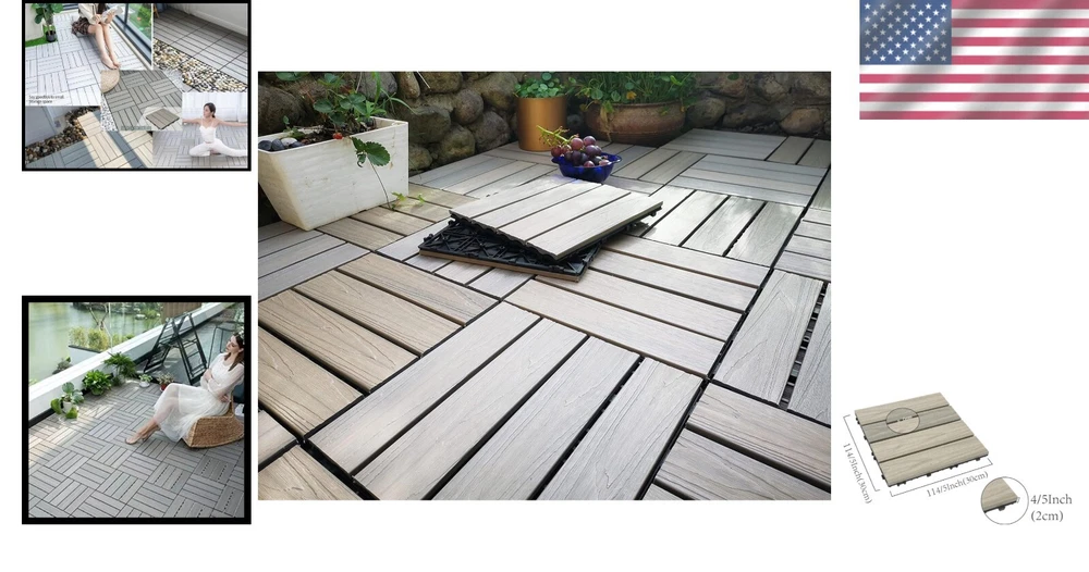 Item Package Quantity: 9 Color: 3D Organic White Batteries Required?: No Form Factor: Square Coverage: 8.7 sq ft Water Resistance Level: Waterproof UPC: Does Not Apply Special Feature: Waterproof Special Features: Waterproof Item Weight: 18.41 lb Finish: Concrete Number of Items: 9 Size: 12 x 12 in Edge Type: Square Edge Underlayment Required: No Material: WPC (Wood Plastic Composite), WPC board, Virgin Plastic, Real Solid wood Brand: Unbranded Pack Size: Individual Item Thickness: 0.8 in Style: Antique Pattern: Solid Shape: Square Minimum Acclimation Period: No Acclimation Required Edge Style: Square Edge Installation: Interlocking Type: Deck Tiles Features: Waterproof, Fire resistance, Weather resistance, Non-slip, Water drainage, Easy to maintain Product Dimensions: 12"l X 12"w Batteries Included?: No Finish Type: Concrete Unit Count: 8.7 Sq Ft gtin13: Does Not Apply Installation Type: Interlocking