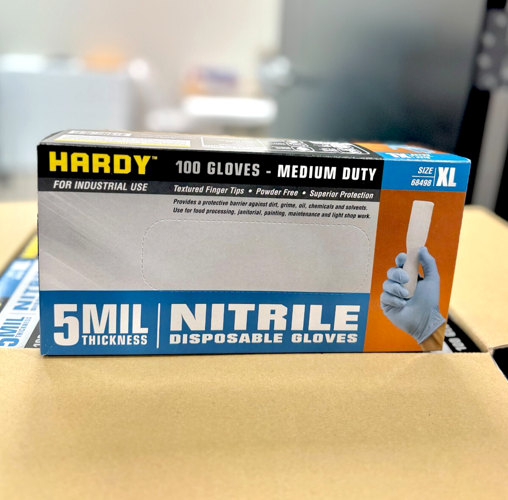 Hardy 68498 Nitrile Gloves (5MIL) MEDIUM DUTY CASE/10 BOXES (XL) BRAND NEW CASE OF 10 BOXES (100 GLOVES PER BOX) TOTAL QTY:1000